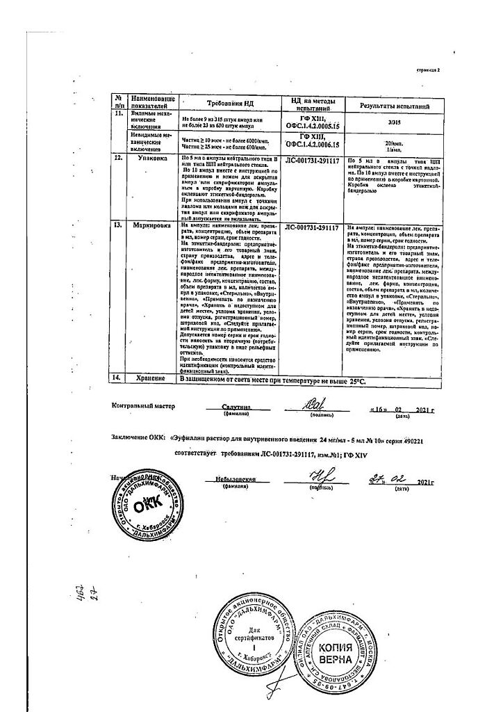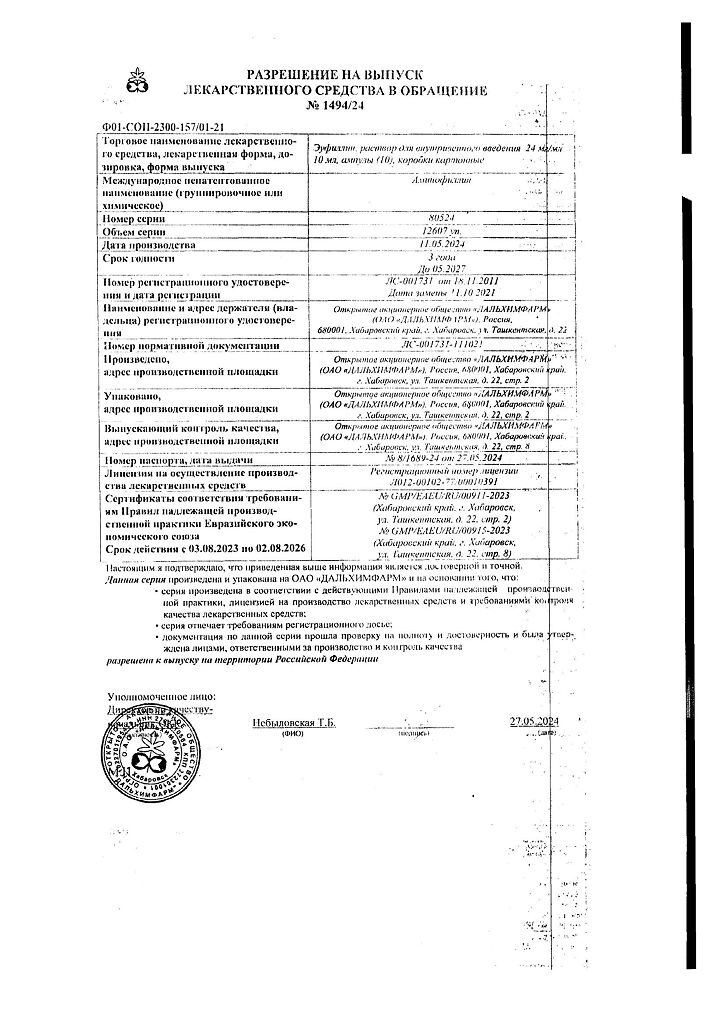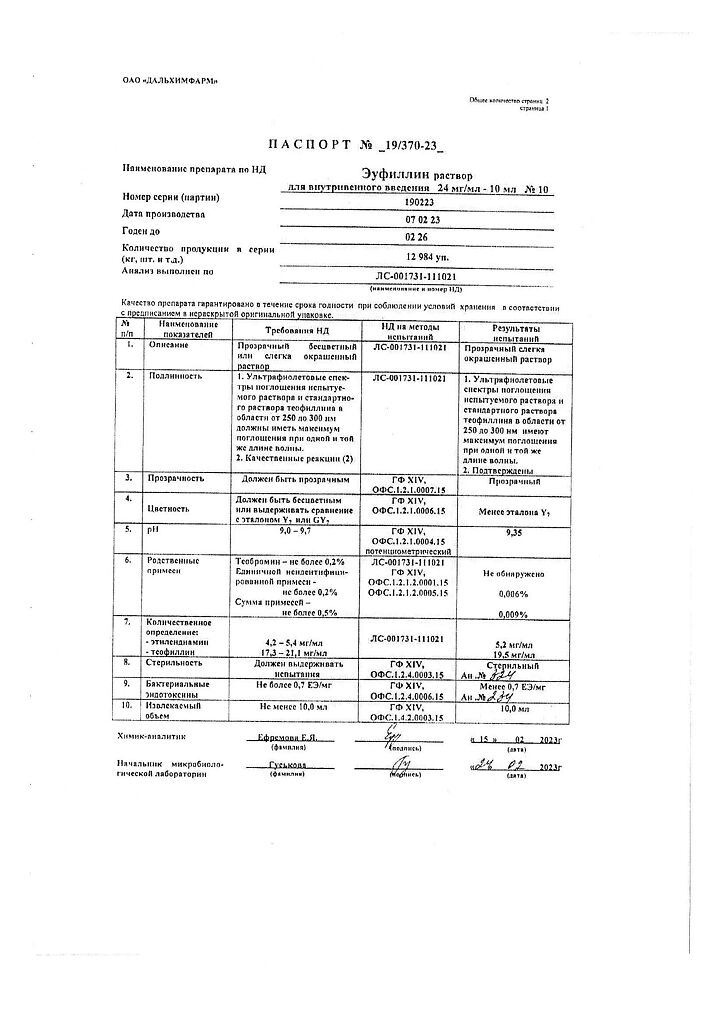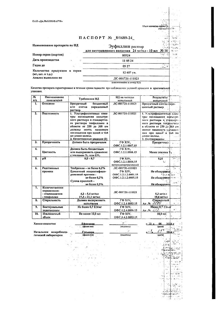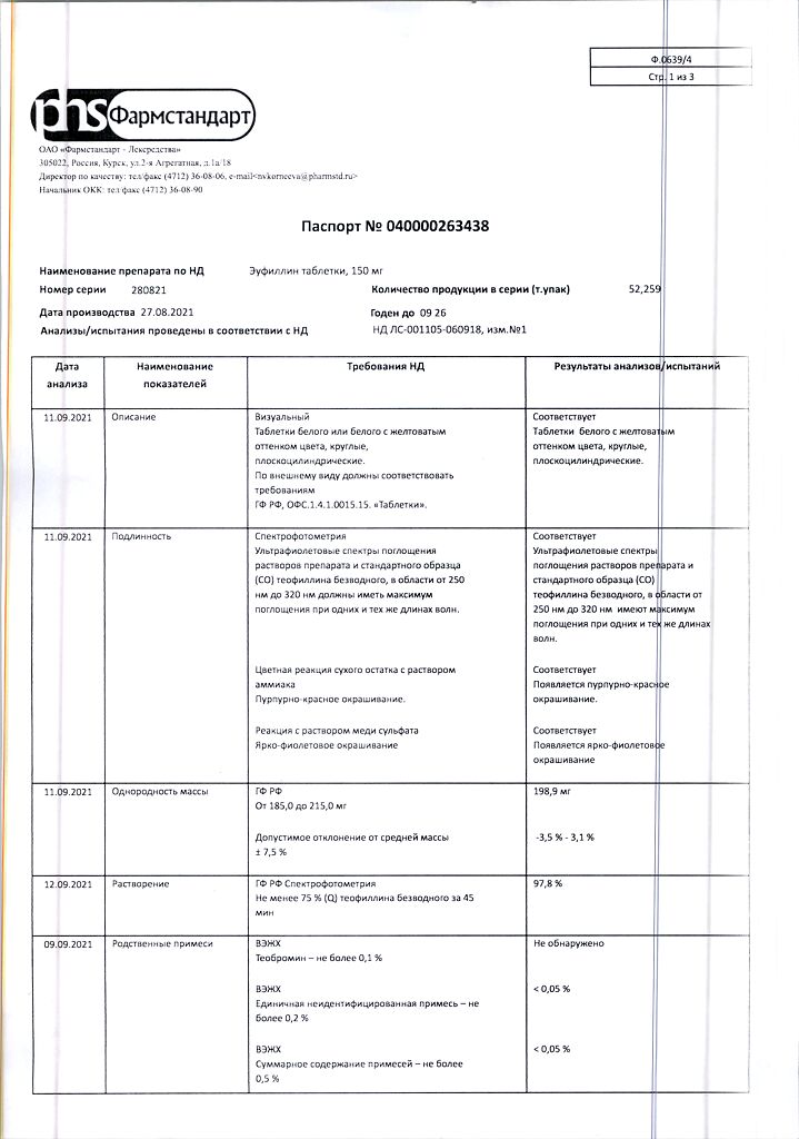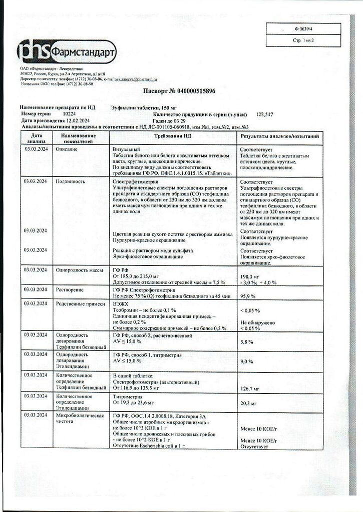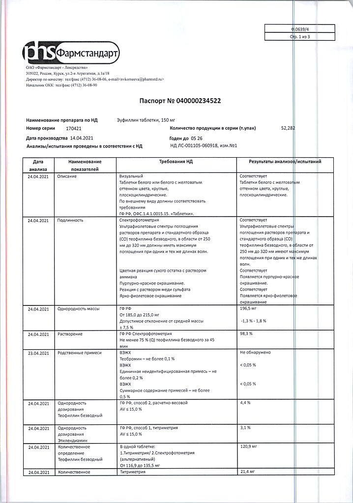 Эуфиллин - бронхолитическое средство, ингибитор ФДЭ. Представляет собой этилендиаминовую соль теофиллина (что облегчает растворимость и увеличивает абсорбцию). Оказывает бронхорасширяющее действие, обусловленное, по-видимому, прямым расслабляющим влиянием на гладкую мускулатуру дыхательных путей и кровеносных сосудов легких. Полагают, что это действие вызвано избирательным подавлением активности специфических ФДЭ, что приводит к повышению внутриклеточной концентрации цАМФ. Результаты экспериментальных исследований in vitro показывают, что основную роль, по-видимому, играют изоферменты III и IV типов. Подавление активности этих изоферментов может также вызывать некоторые побочные эффекты аминофиллина (теофиллина), в т.ч. рвоту, артериальную гипотензию и тахикардию. Блокирует аденозиновые (пуриновые) рецепторы, что может быть одним из факторов действия на бронхи.