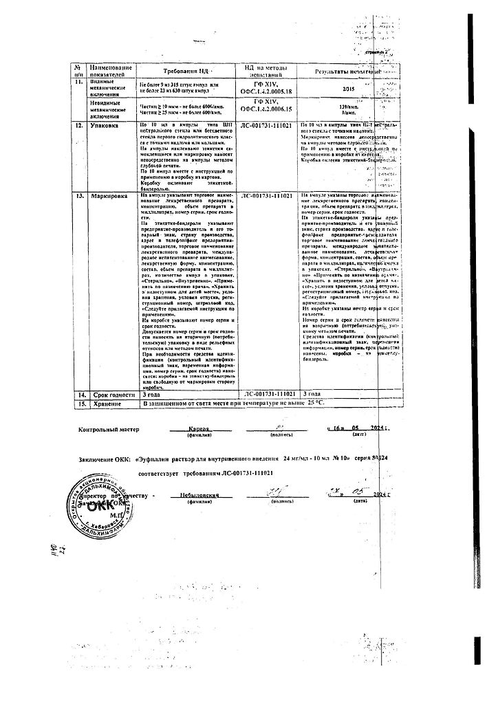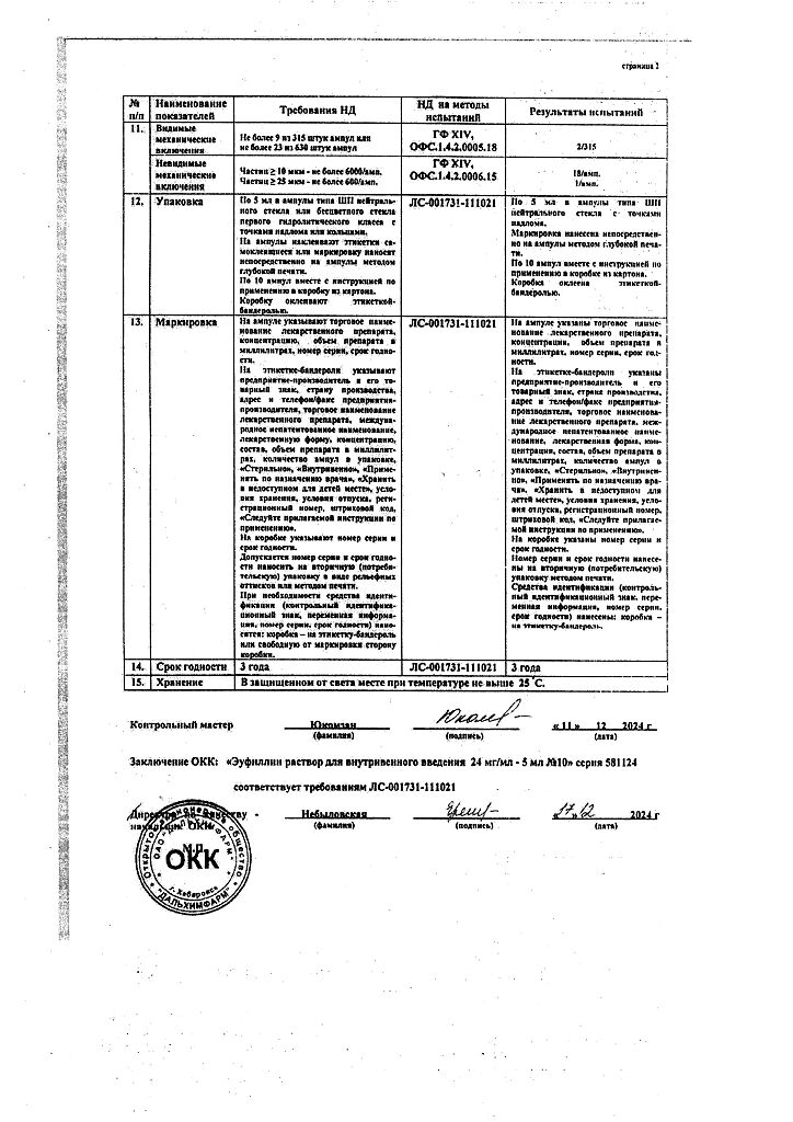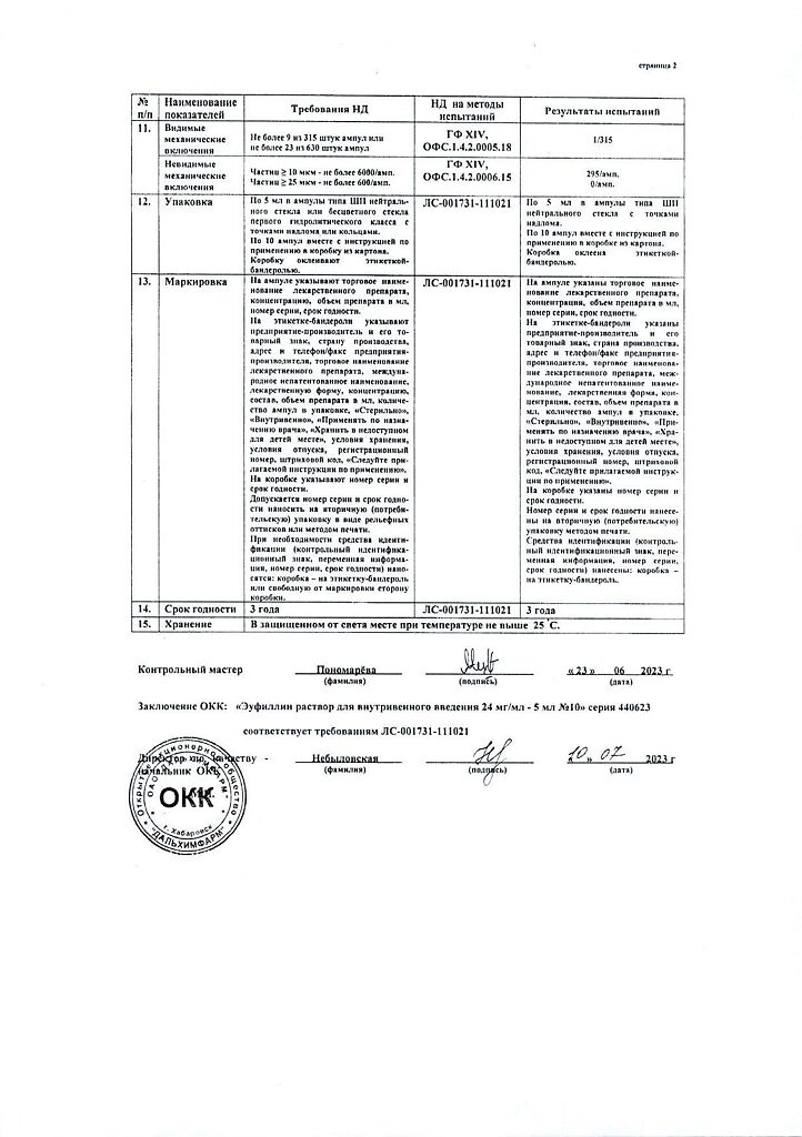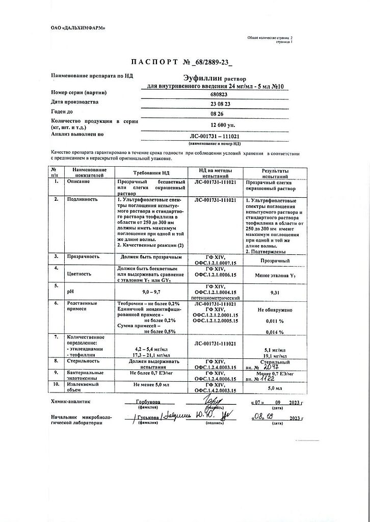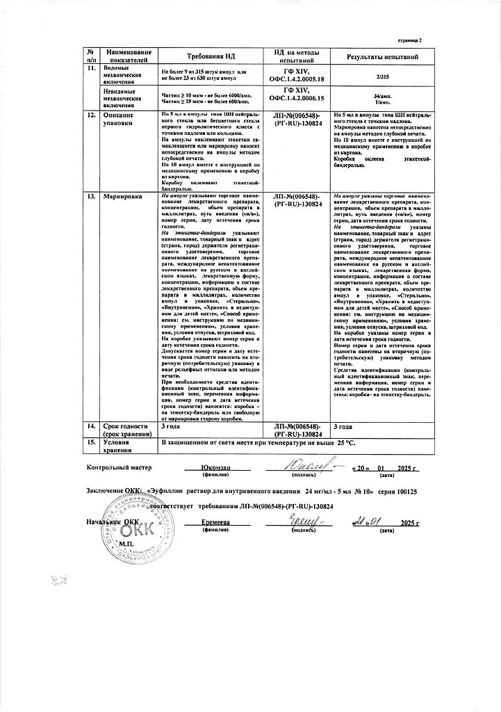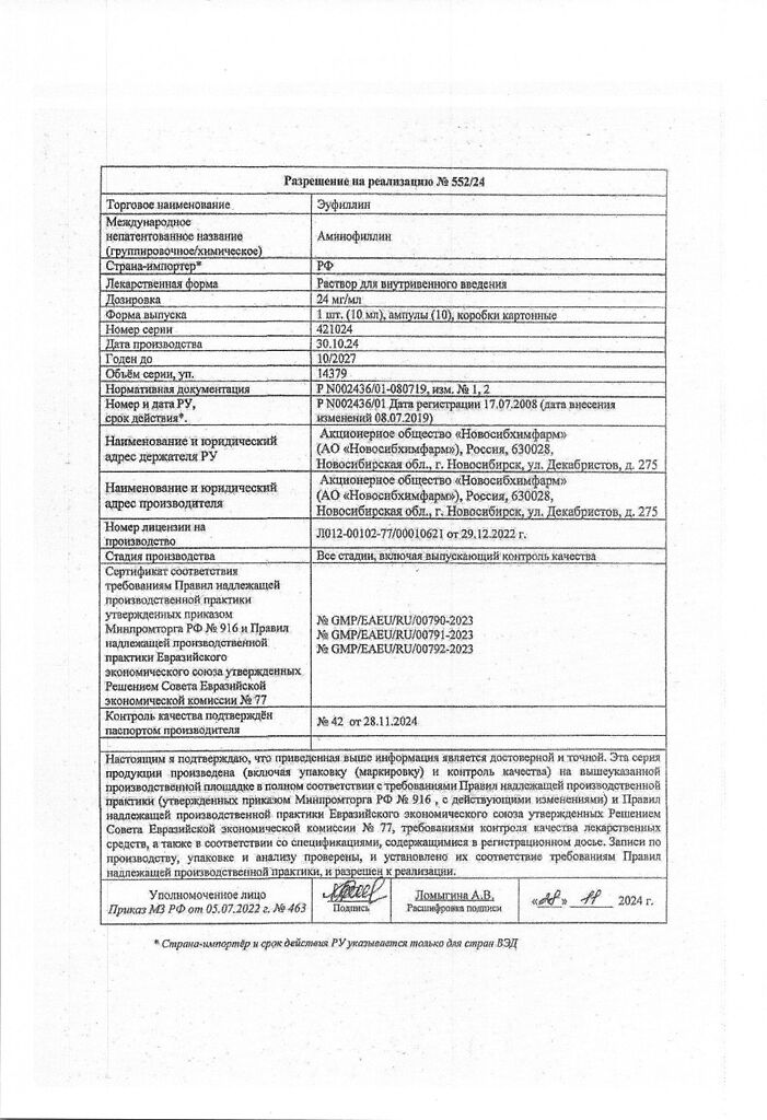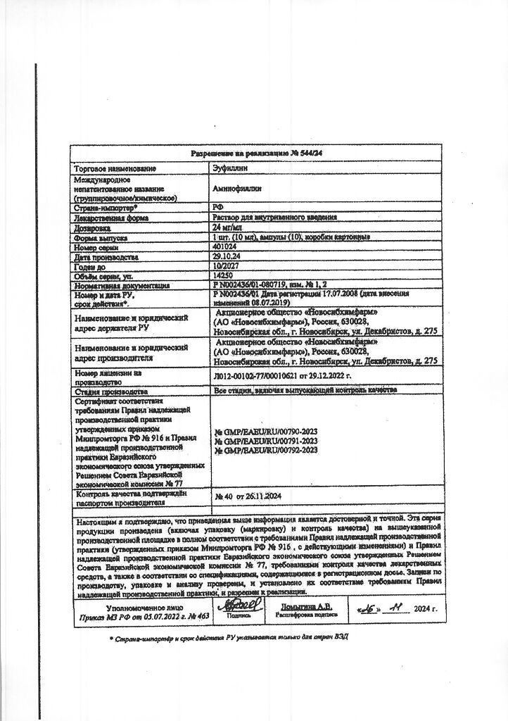 Лечение передозировки зависит от клинической картины, включает отмену препарата, стимуляцию выведения его из организма (форсированный диурез, гемосорбция, плазмосорбция, гемодиализ, перитонеальный диализ) и назначение симптоматических средств. Для купирования судорог применяется диазепам (в инъекциях). Нельзя применять барбитураты. При выраженной интоксикации (содержание эуфиллина более 50 г/л) рекомендован гемодиализ.