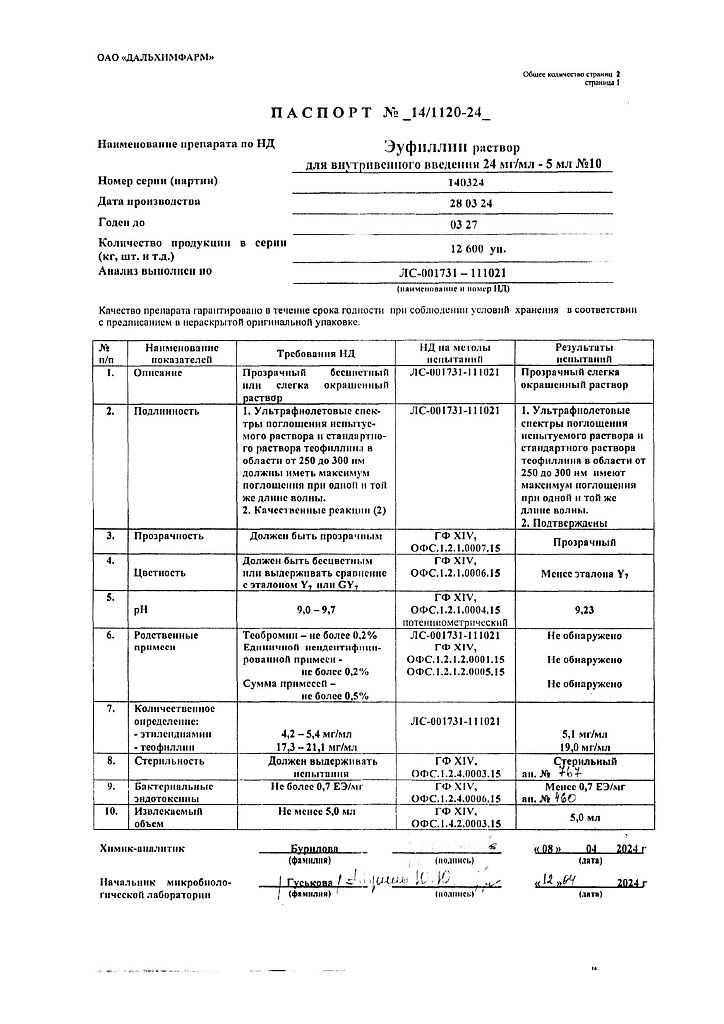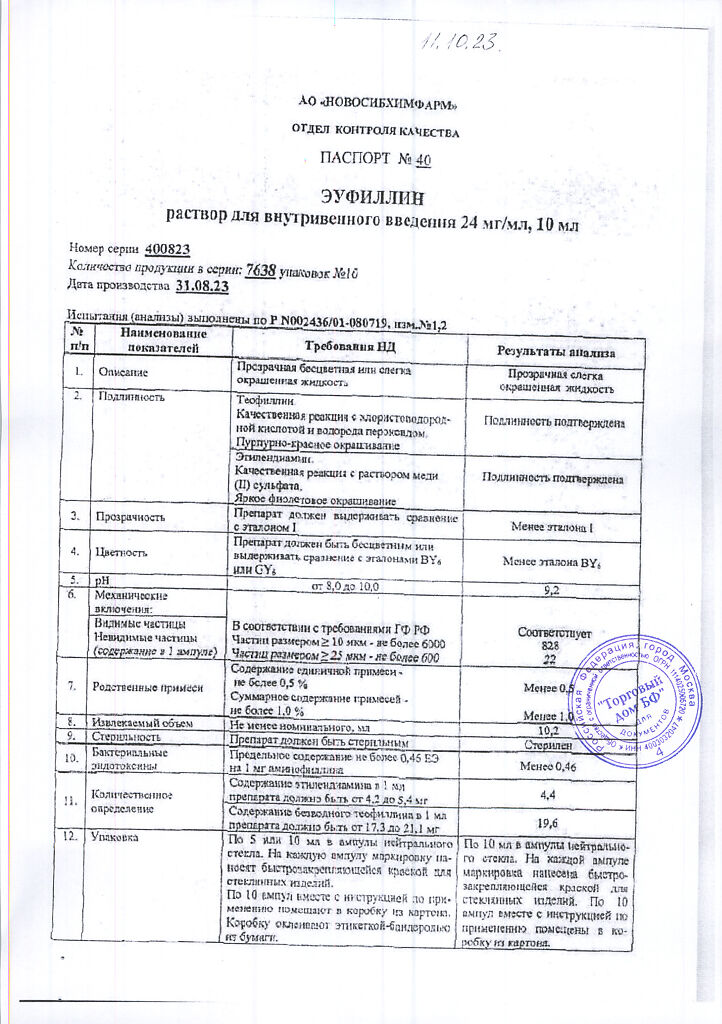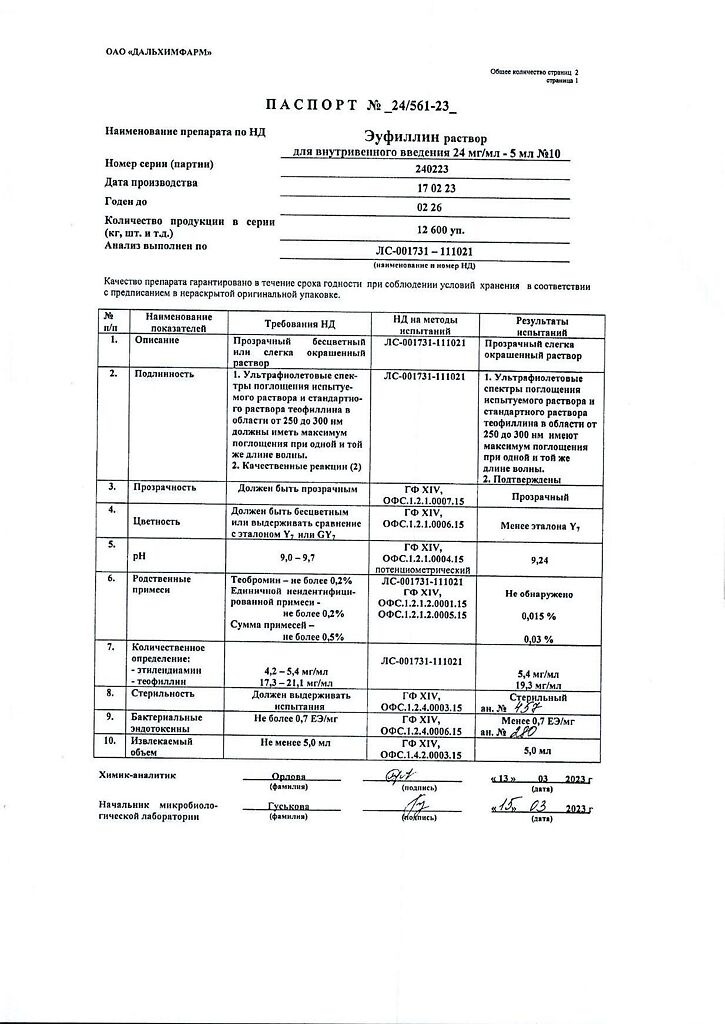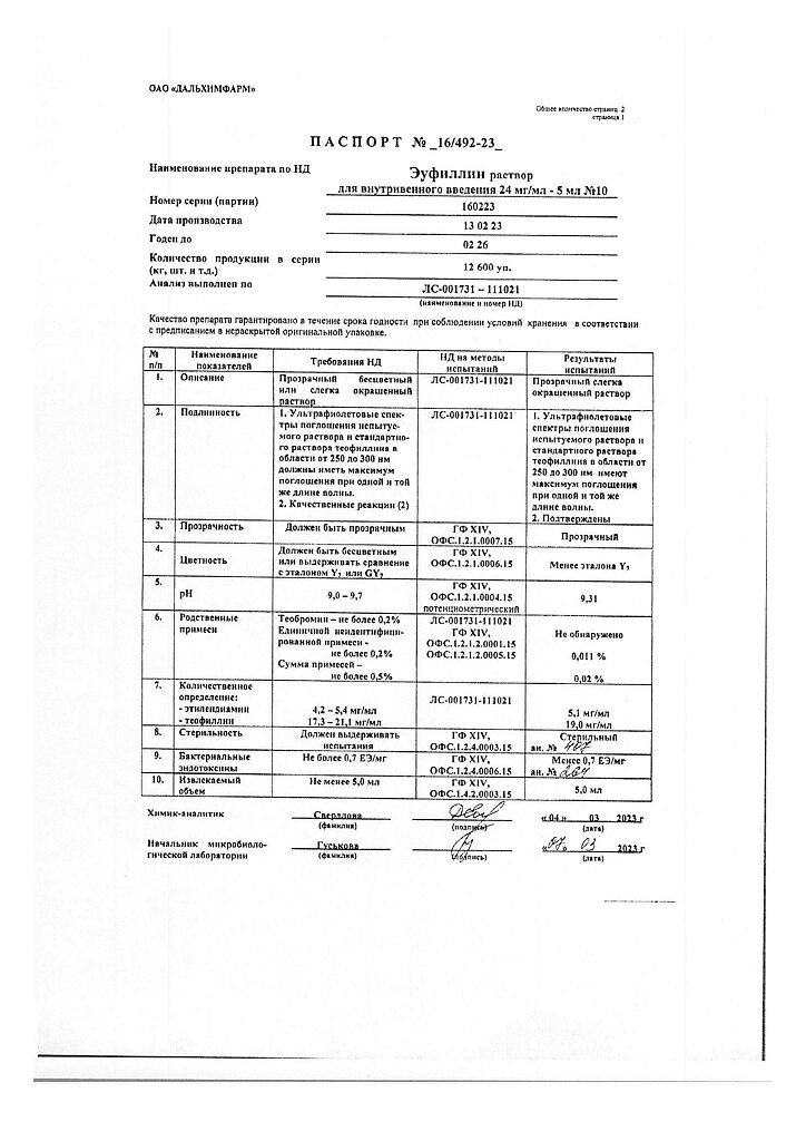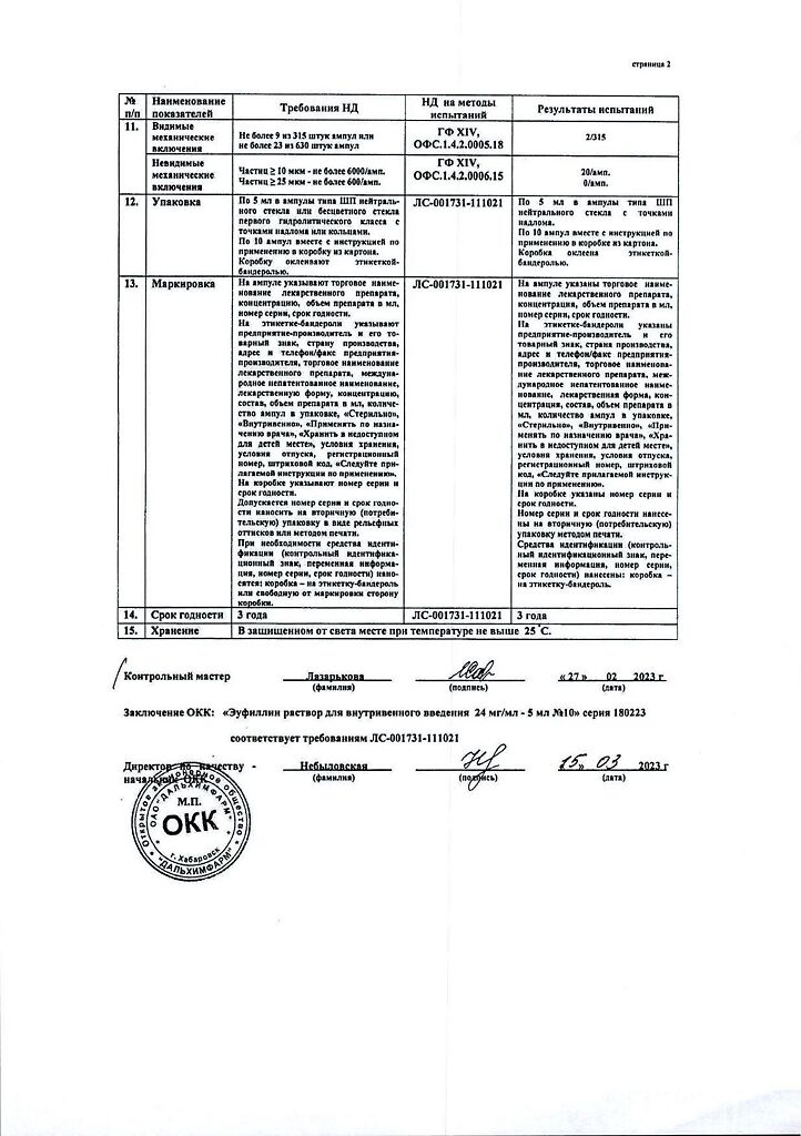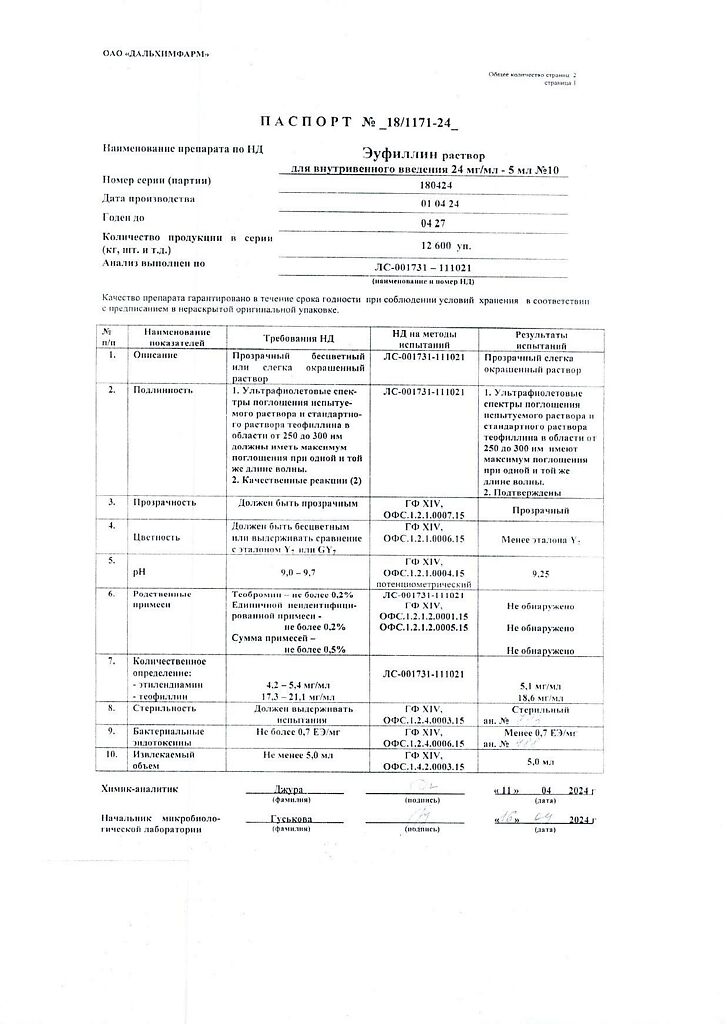 В организме аминофиллин метаболизируется при физиологических значениях pH с высвобождением свободного теофиллина. Бронходилатирующие свойства проявляются при концентрациях теофиллина в плазме крови 10-20 мкг/мл. Концентрация свыше 20 мг/мл является токсической. Возбуждающий эффект на дыхательный центр реализуется при более низкой концентрации - 5-10 мкг/мл.