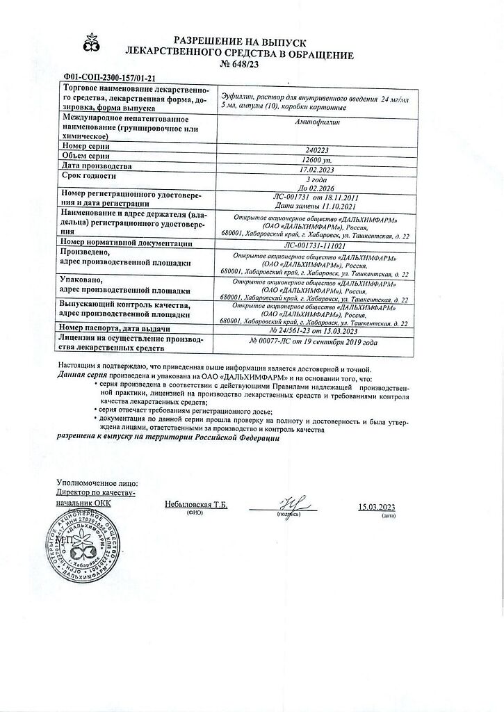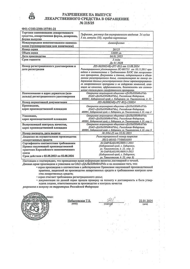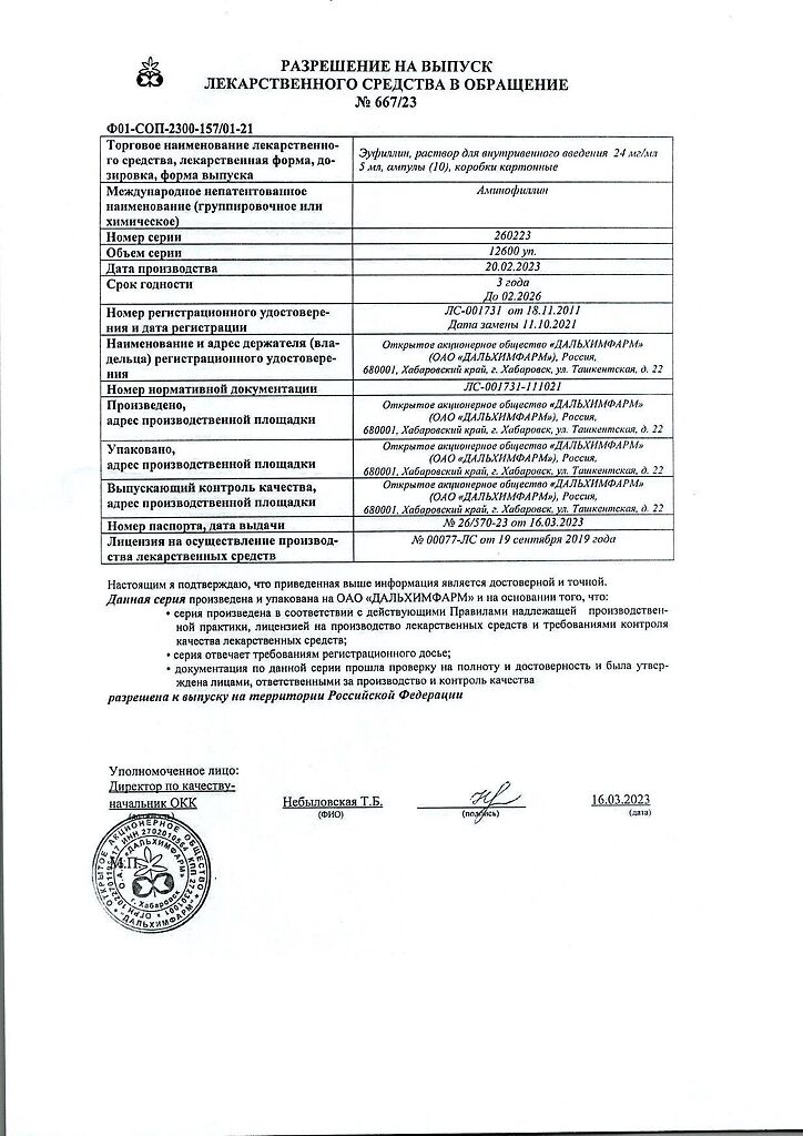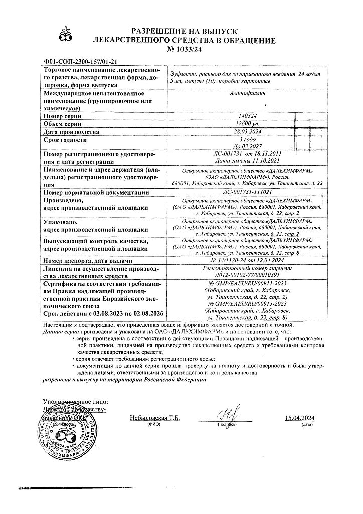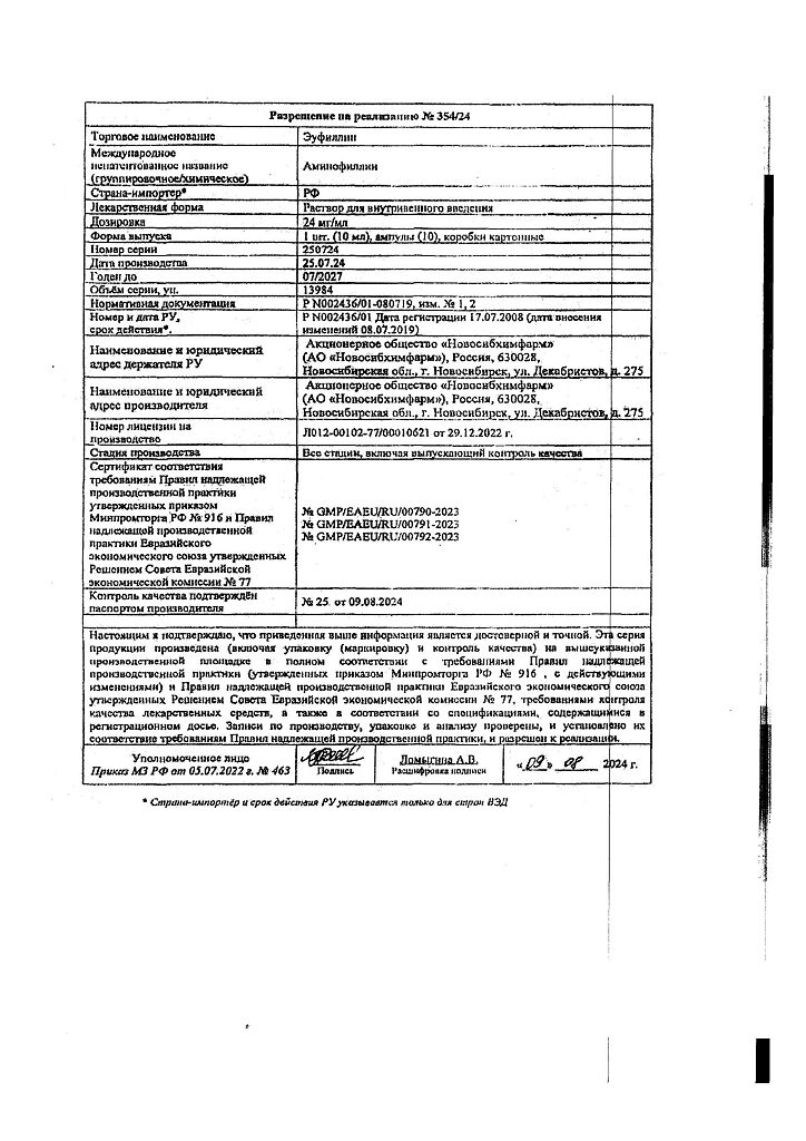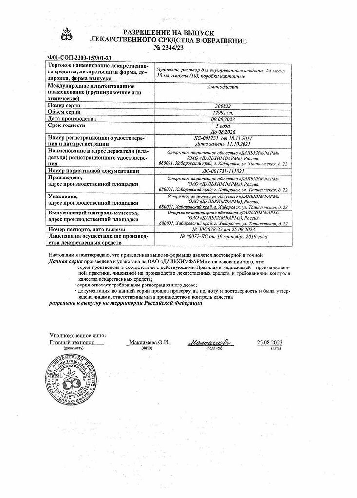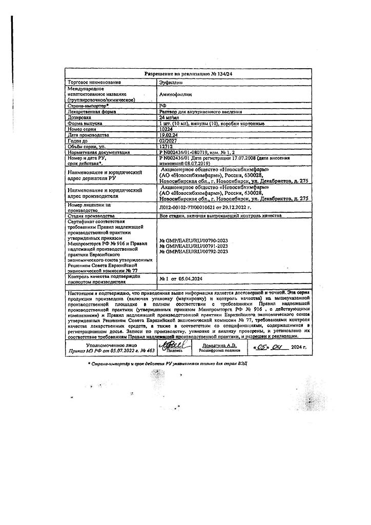 При замене применяемой лекарственной формы аминофиллина на другую необходимо клиническое наблюдение и контроль концентрации теофиллина в плазме крови.