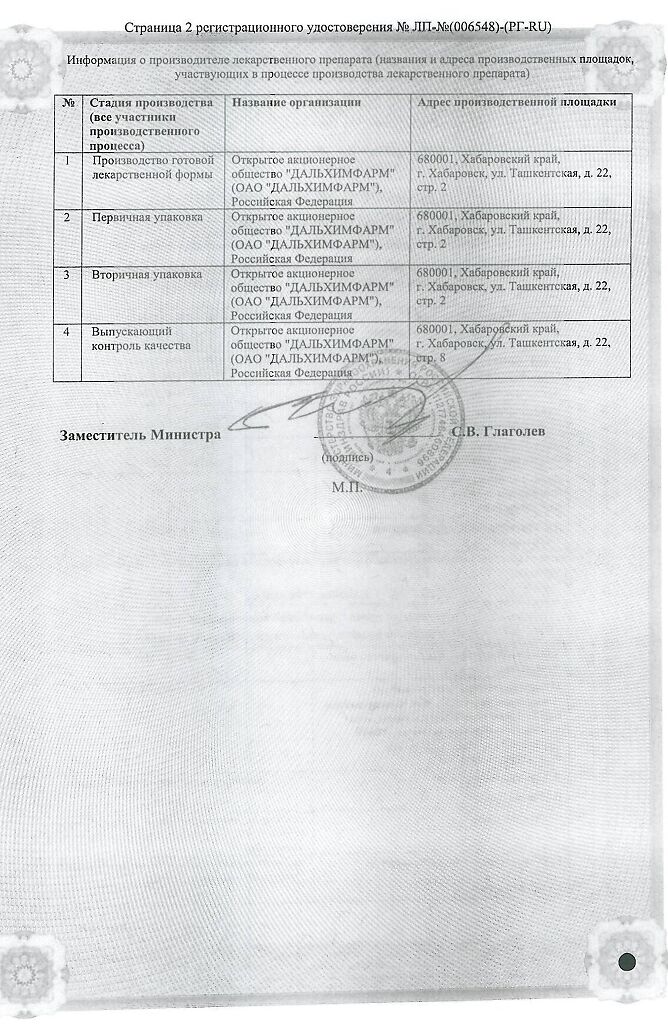 Производитель: Борисовский завод медицинских препаратов, Беларусь