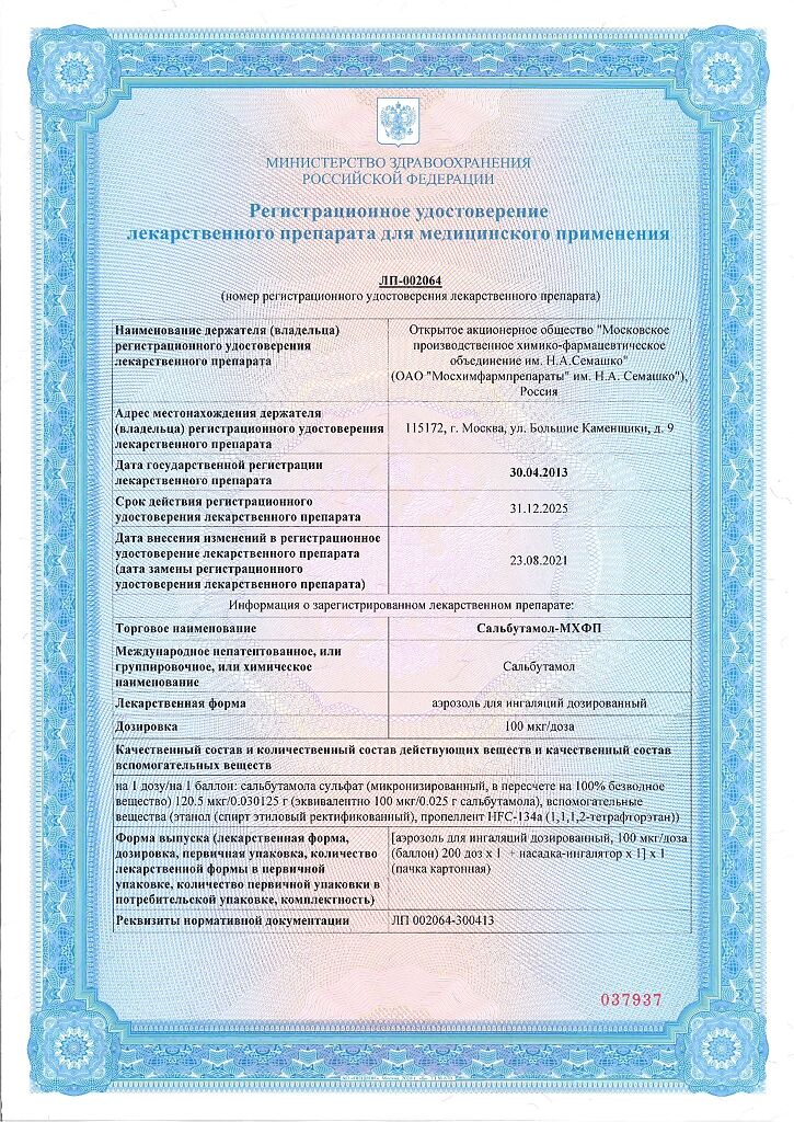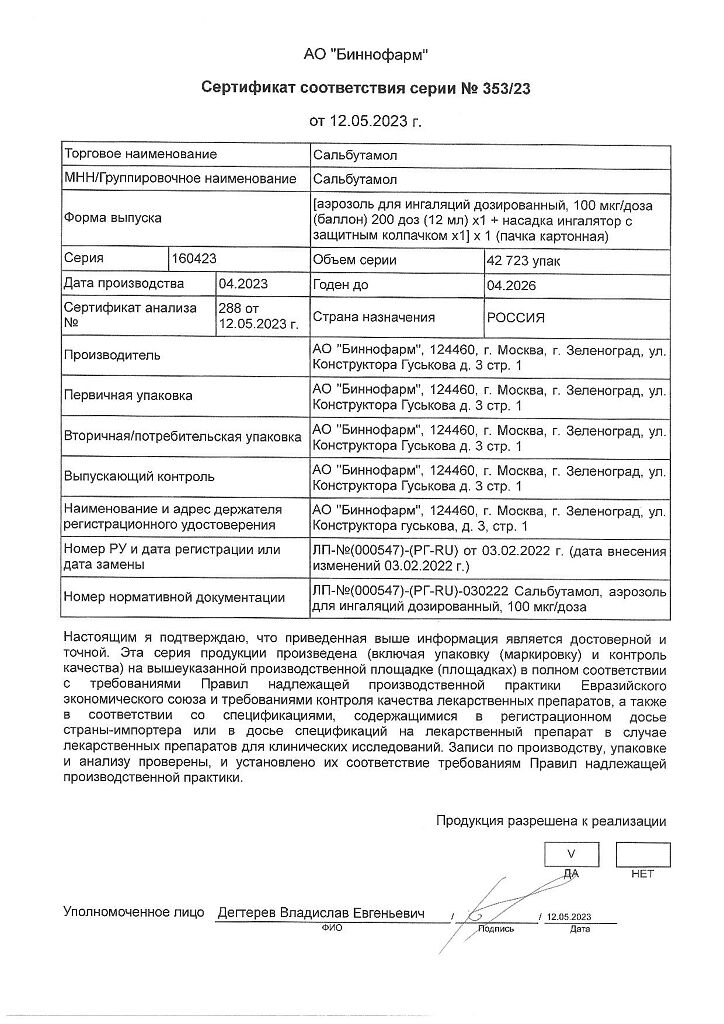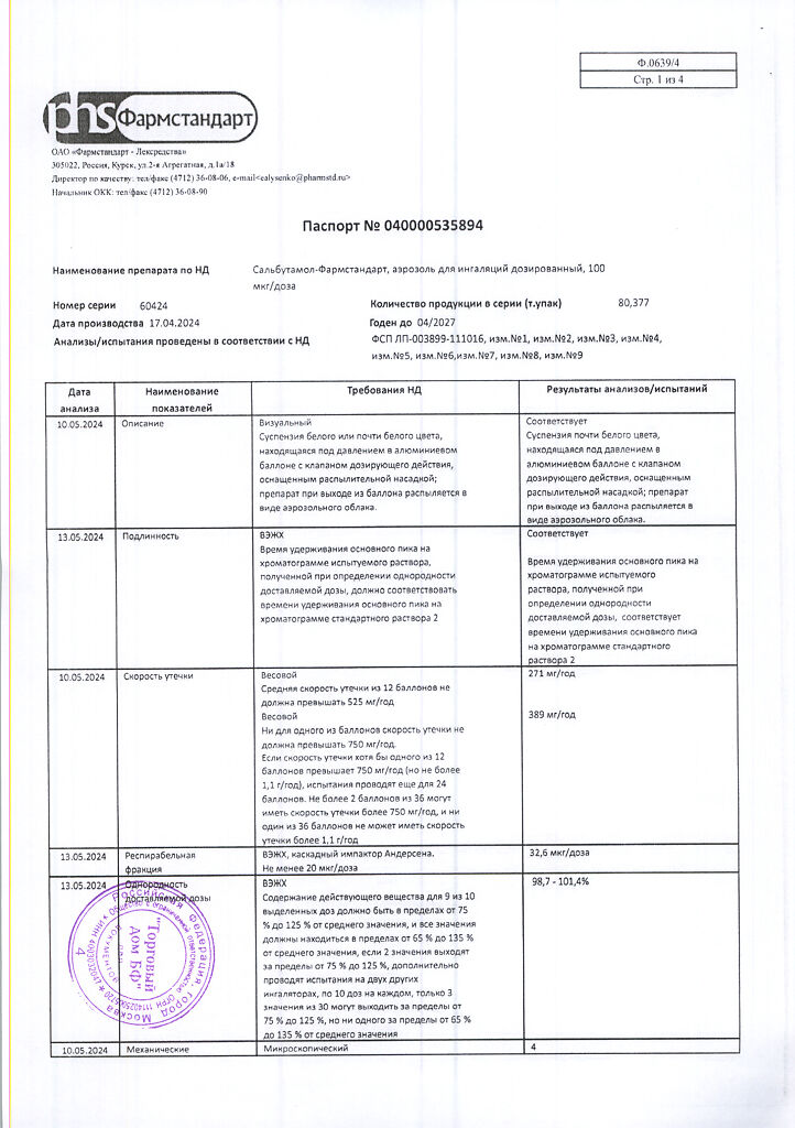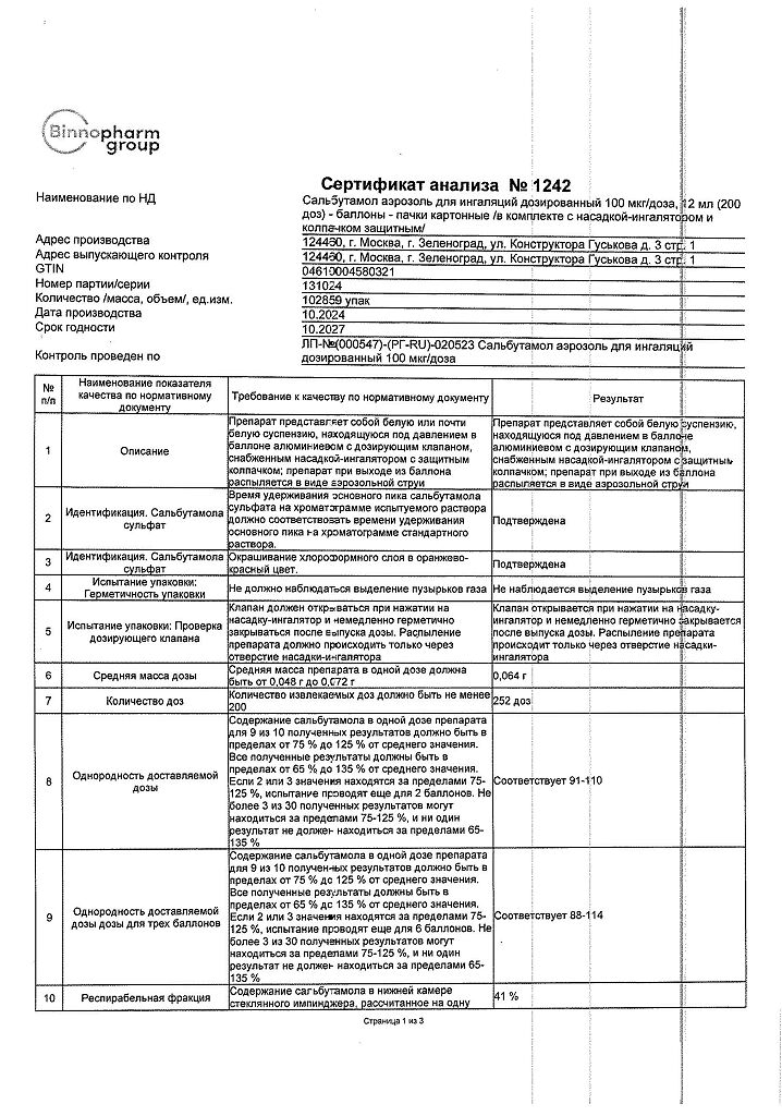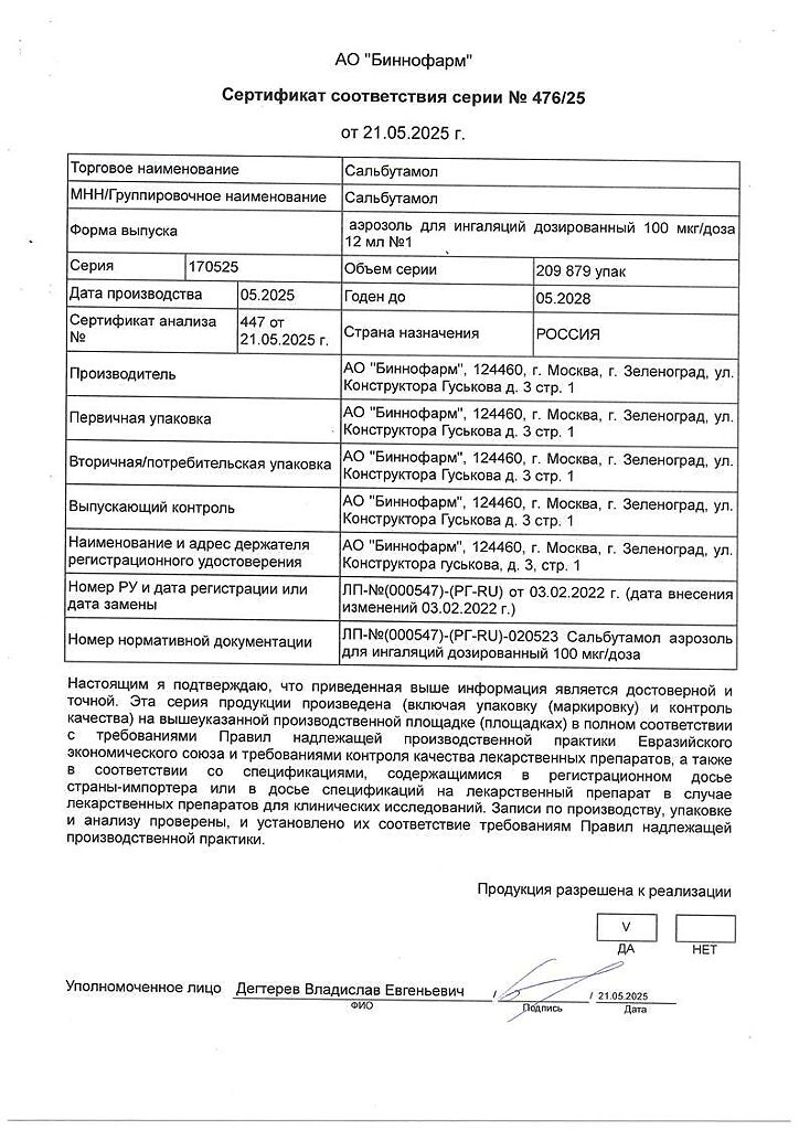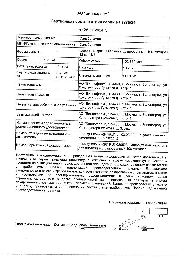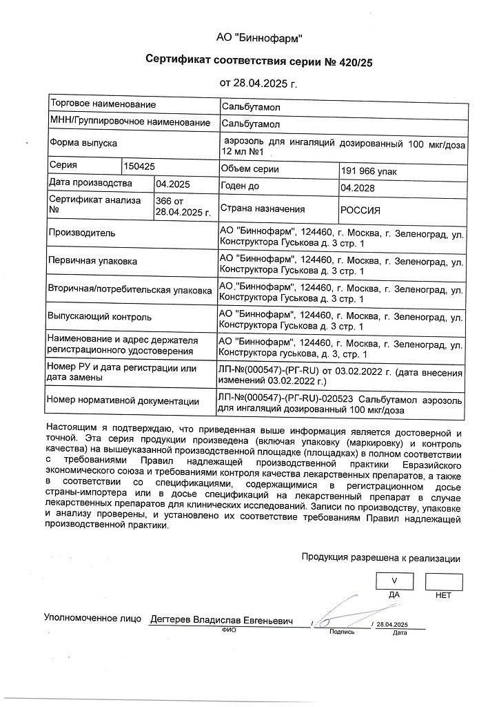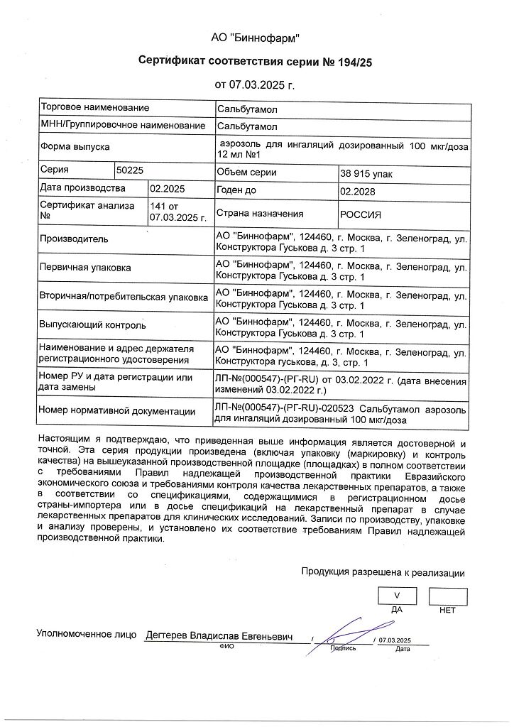 • Информацию об акциях и скидках на Сальбутамол уточняйте на нашем сайте.