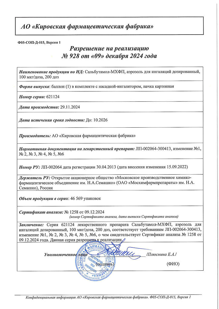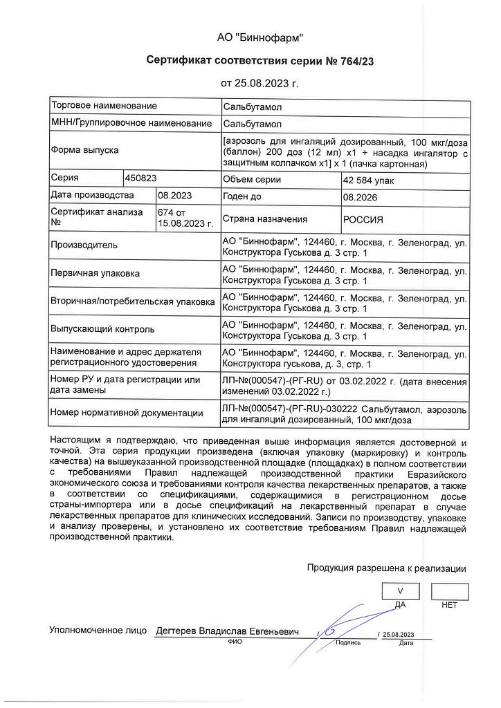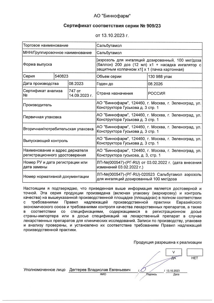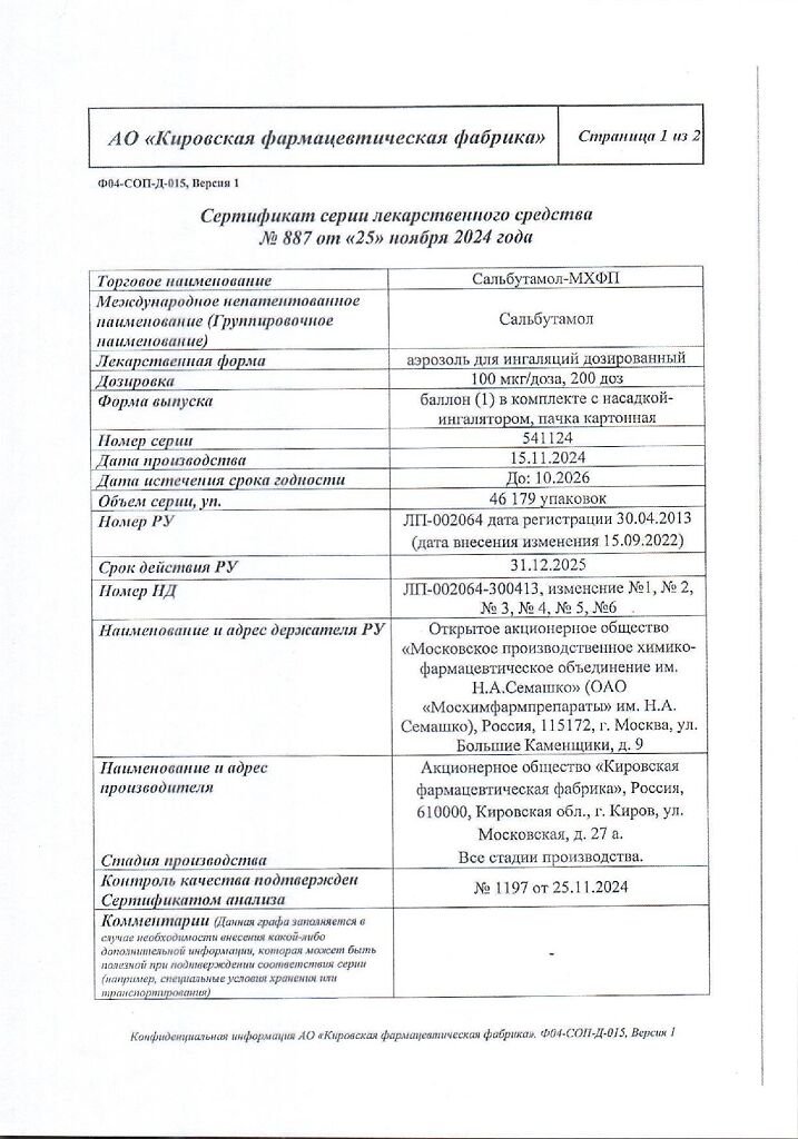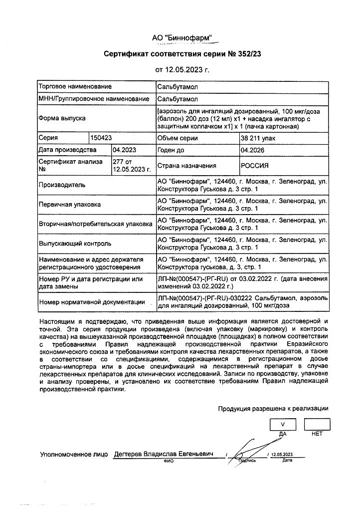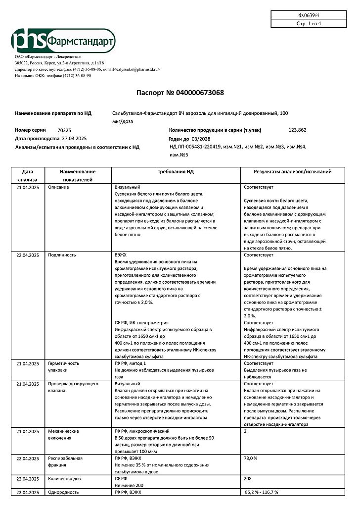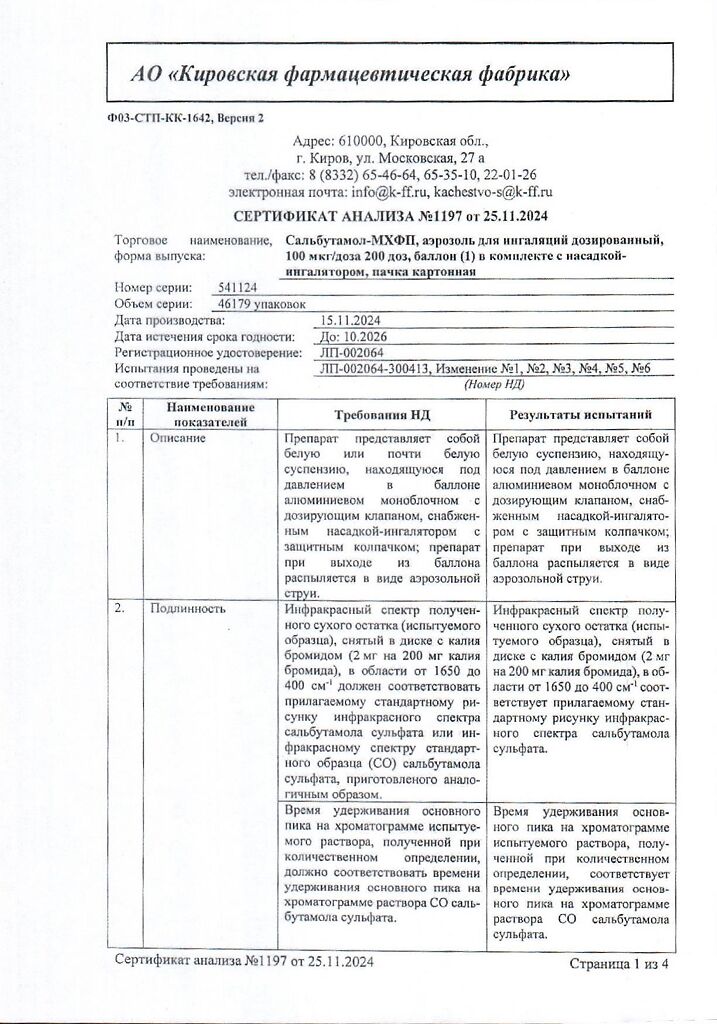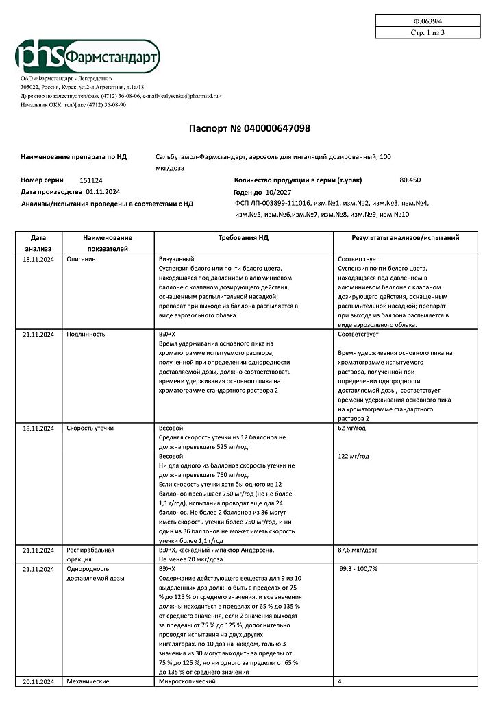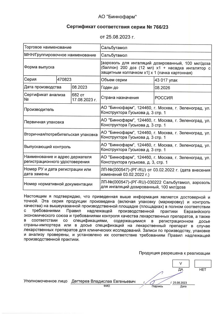 • Информацию об акциях и скидках на Сальбутамол уточняйте на нашем сайте.