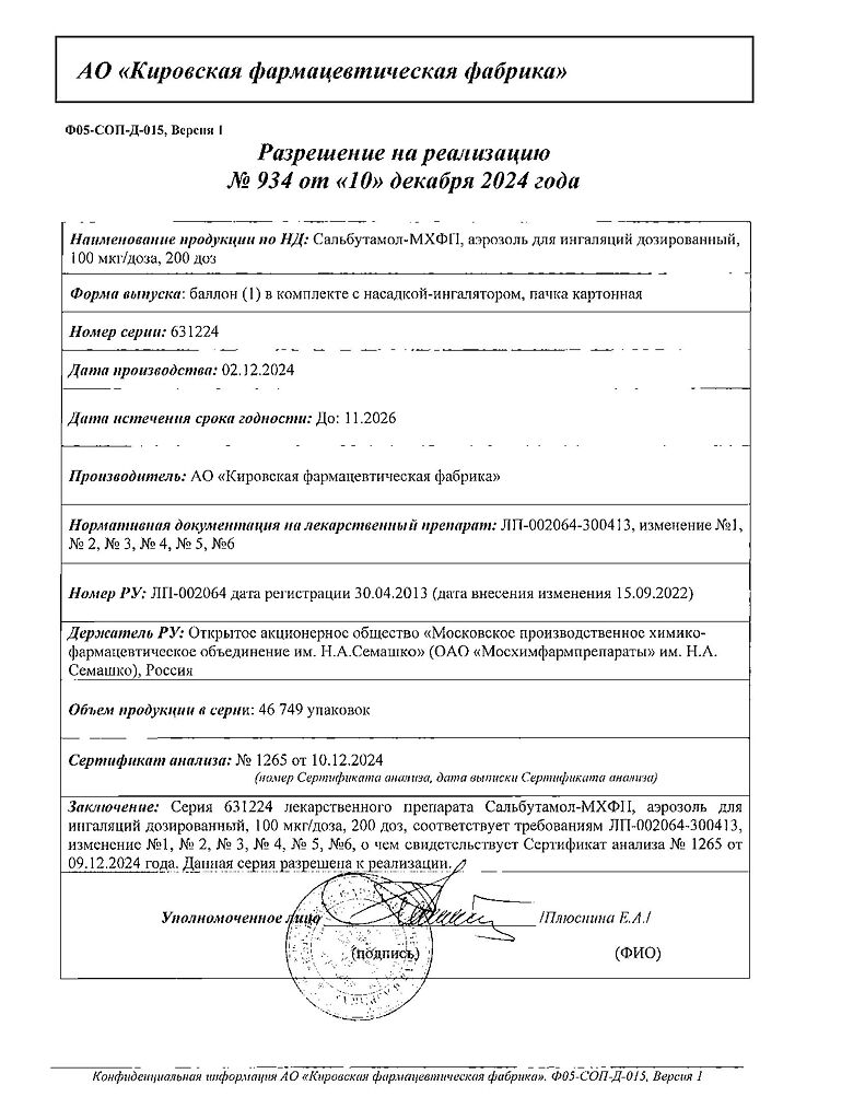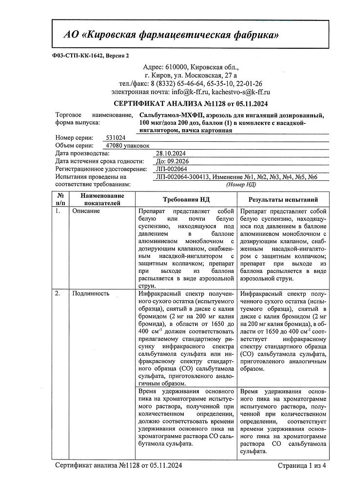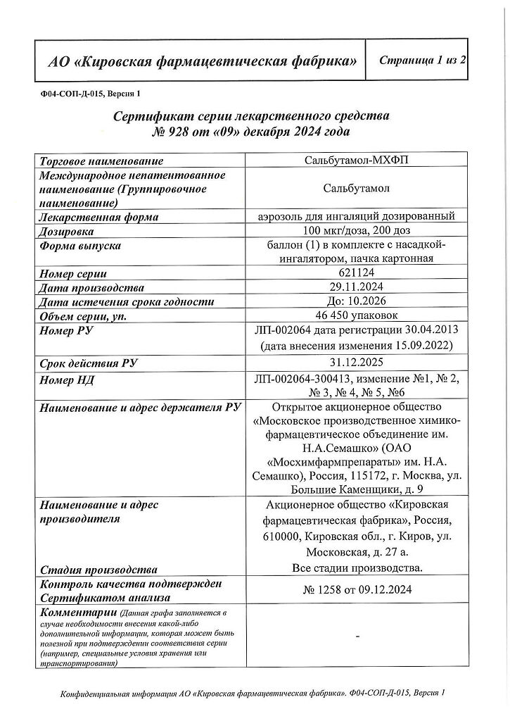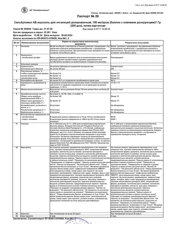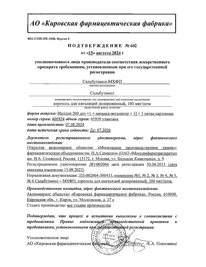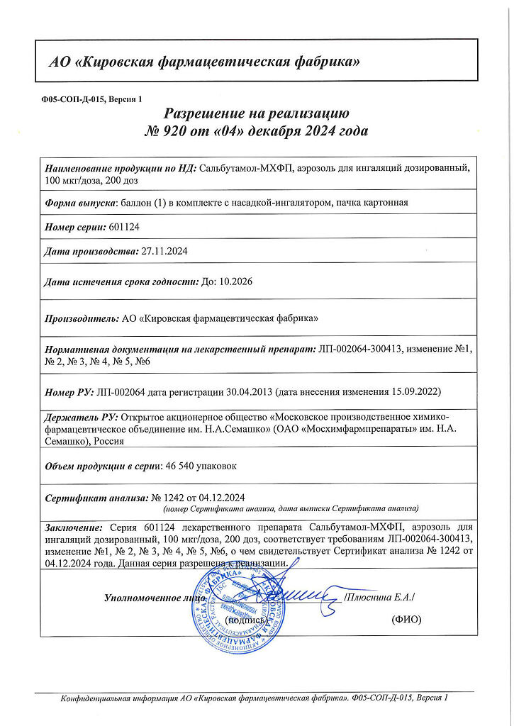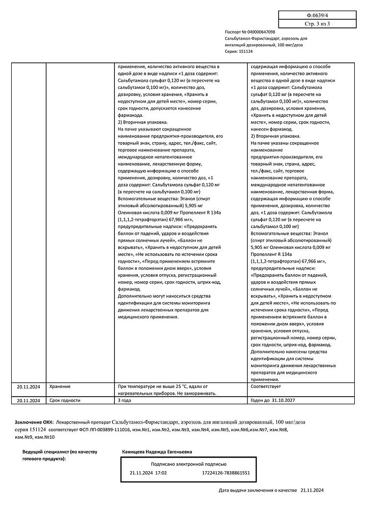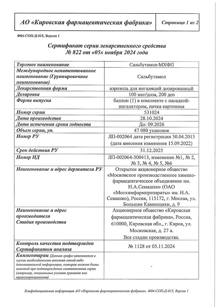• Информацию об акциях и скидках на Сальбутамол уточняйте на нашем сайте.