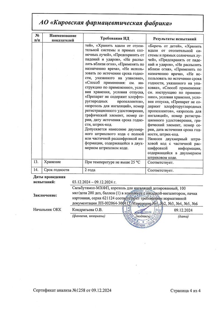 Купирование приступа бронхоспазма: рекомендуемая доза составляет 100-200 мкг (1-2 ингаляции).