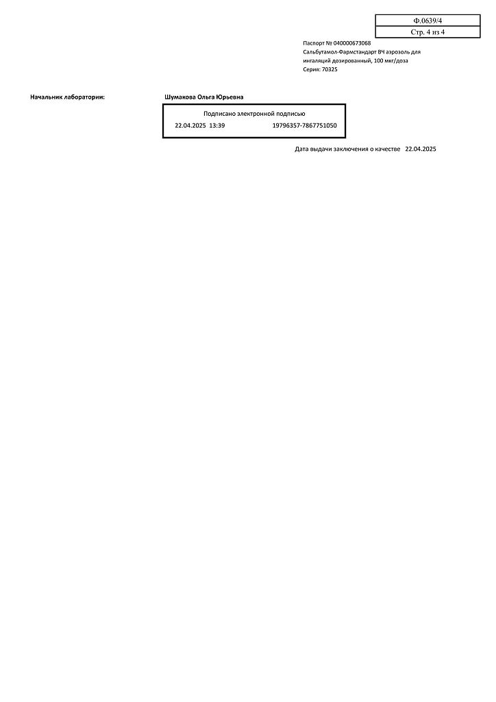 После применения ингаляционных форм действие развивается быстро, начало эффекта – через 5 мин, максимум – через 30-90 мин (75 % максимального эффекта достигается в течение 5 мин), продолжительность – 4-6 ч.