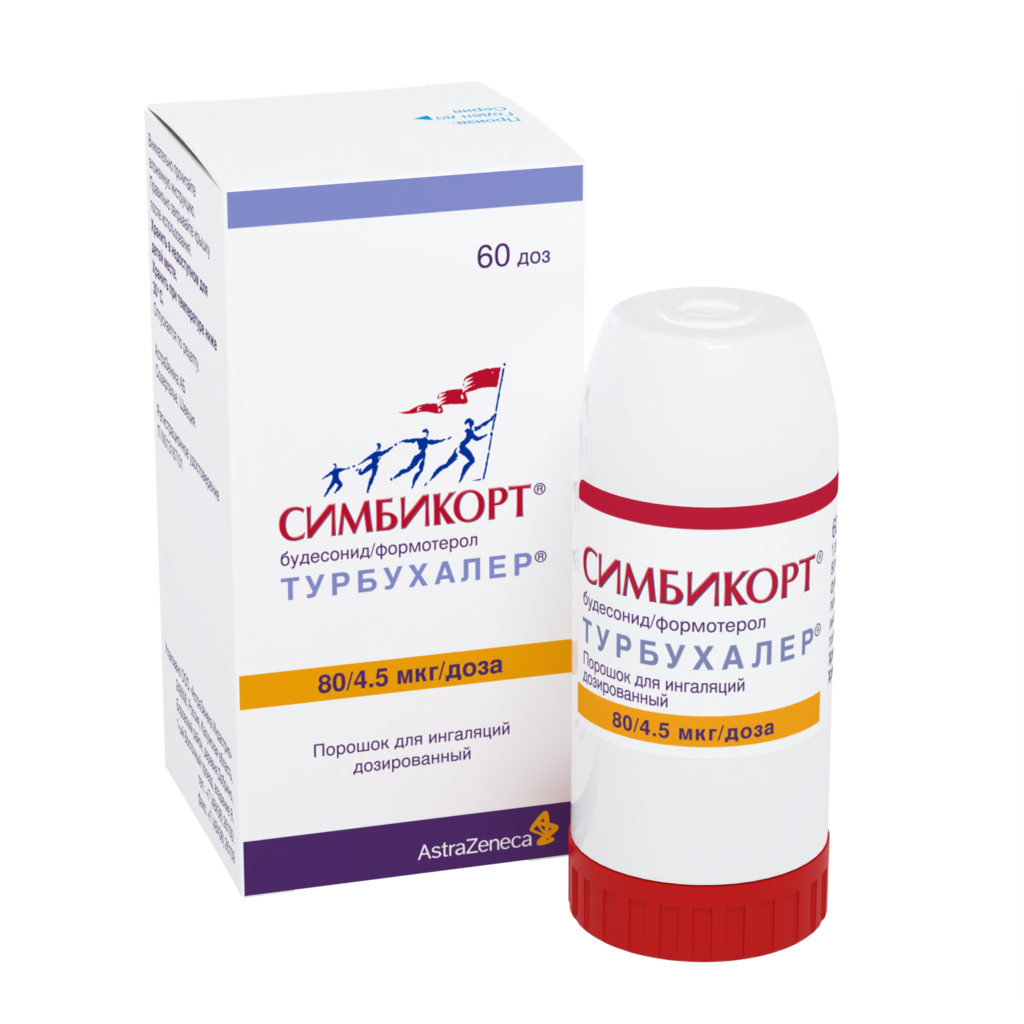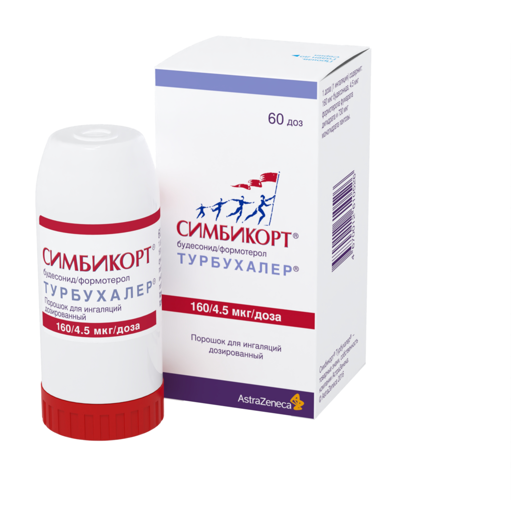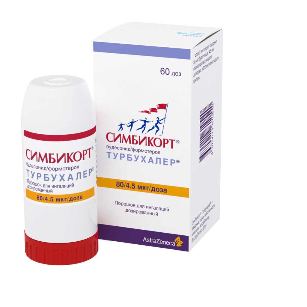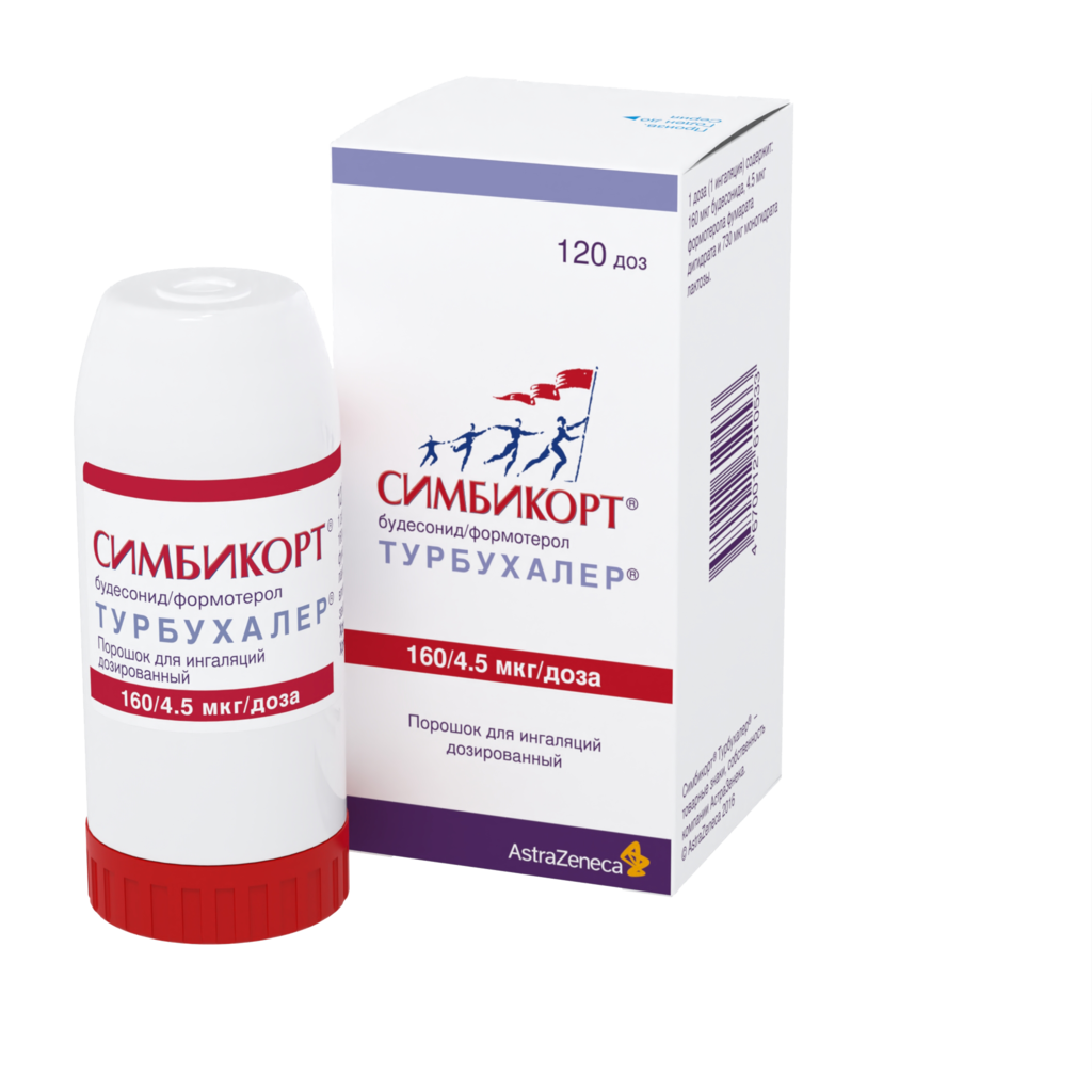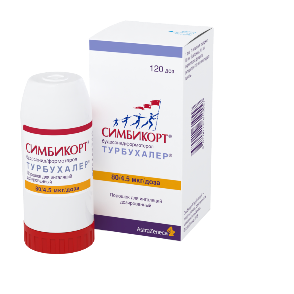 Симбикорт Турбухалер содержит формотерол и будесонид, которые имеют разные механизмы действия и проявляют аддитивный эффект в отношении снижения частоты обострений бронхиальной астмы.