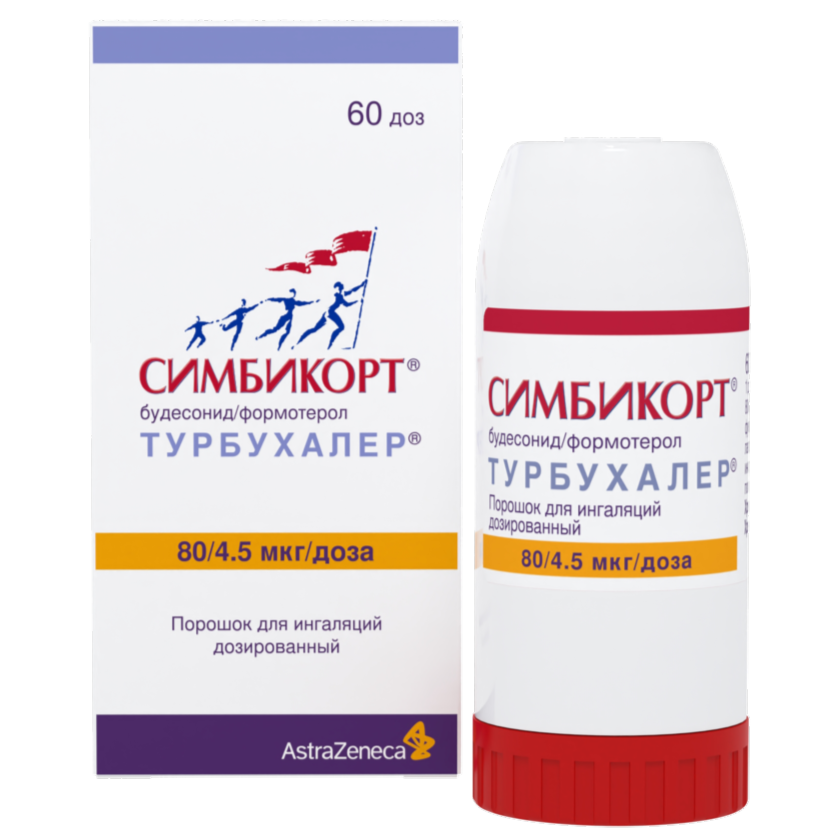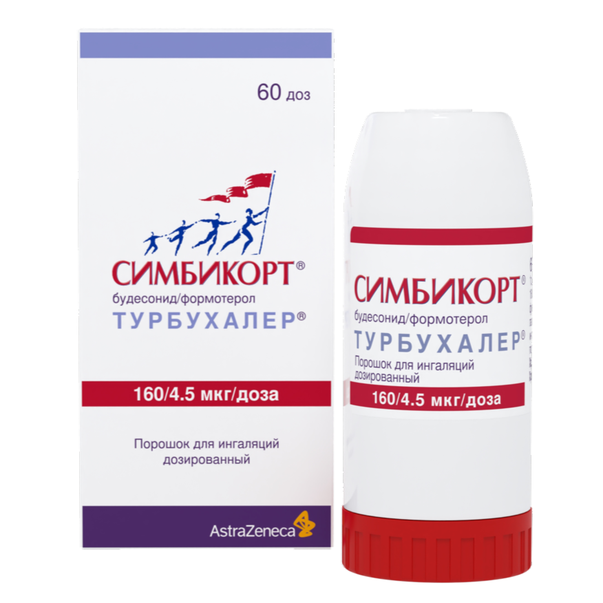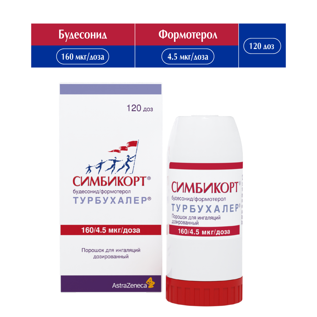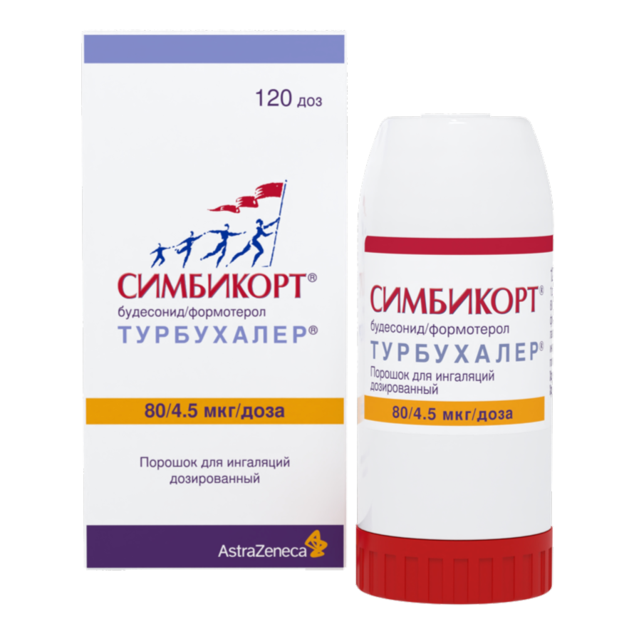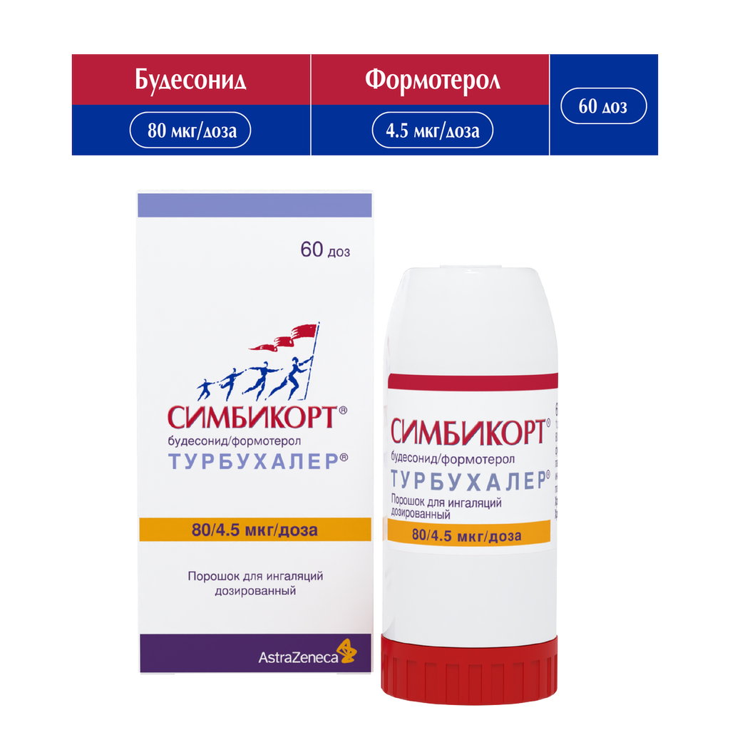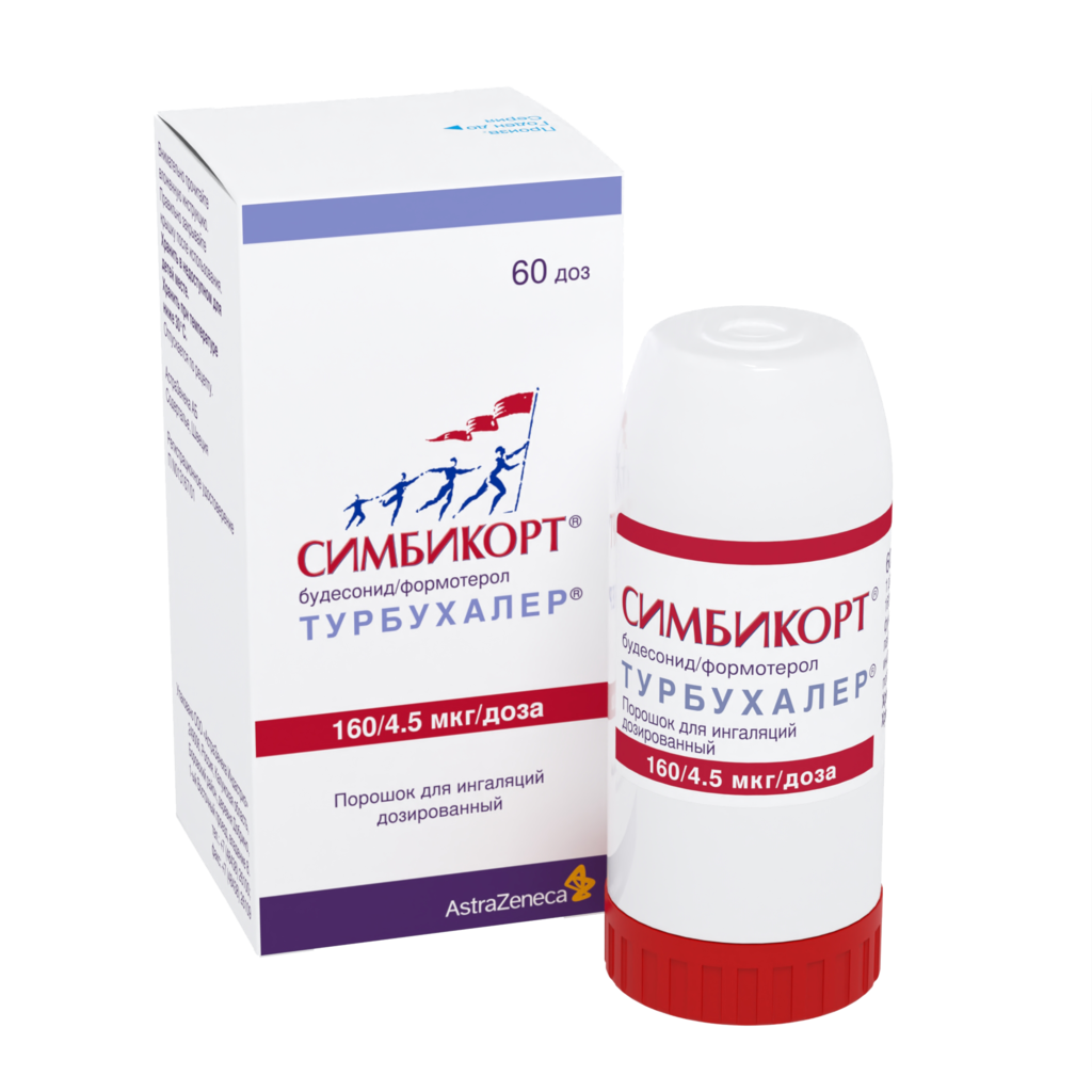 Симбикорт Турбухалер содержит формотерол и будесонид, которые имеют разные механизмы действия и проявляют аддитивный эффект в отношении снижения частоты обострений бронхиальной астмы.