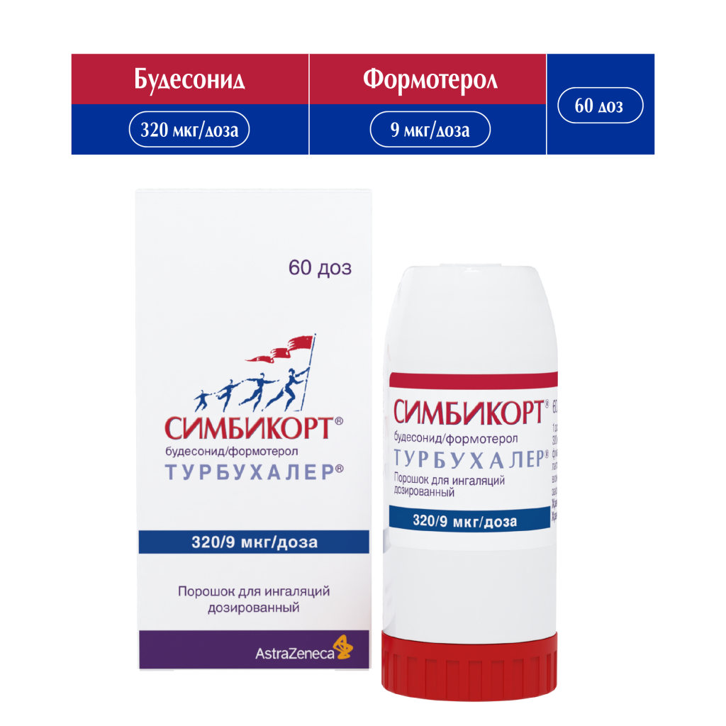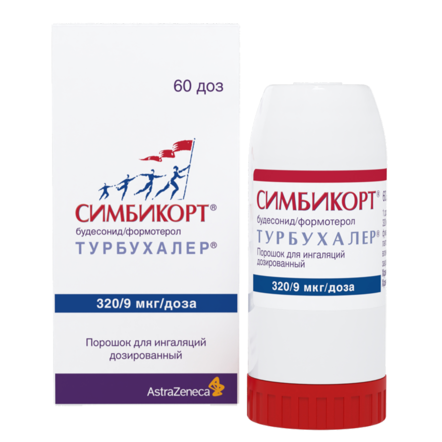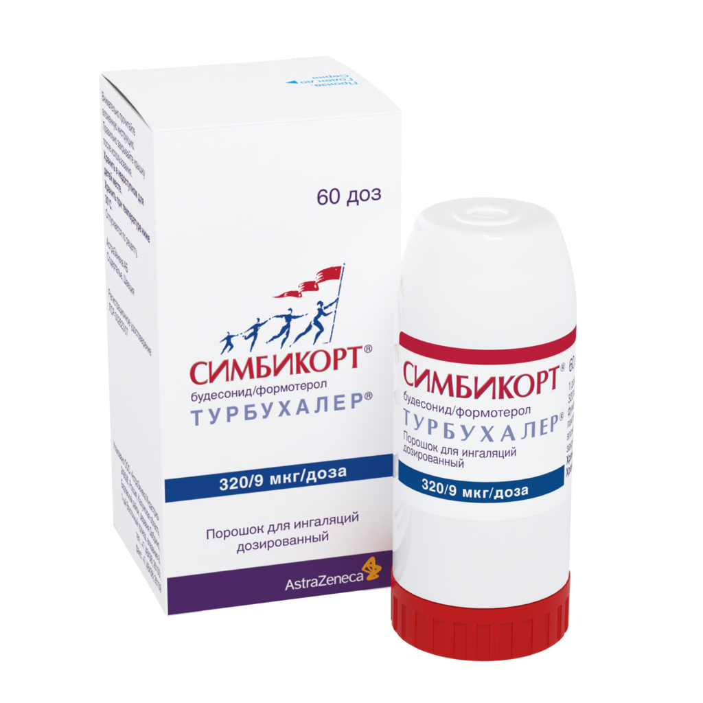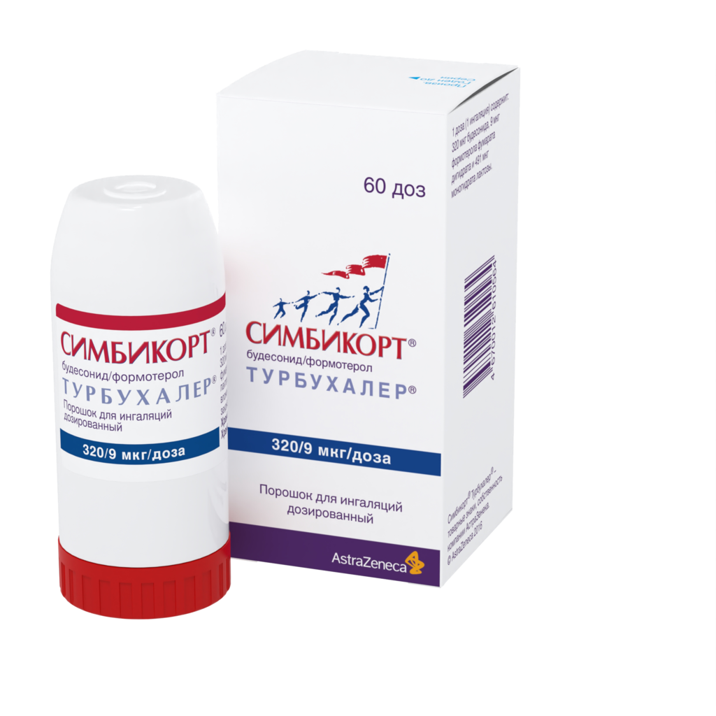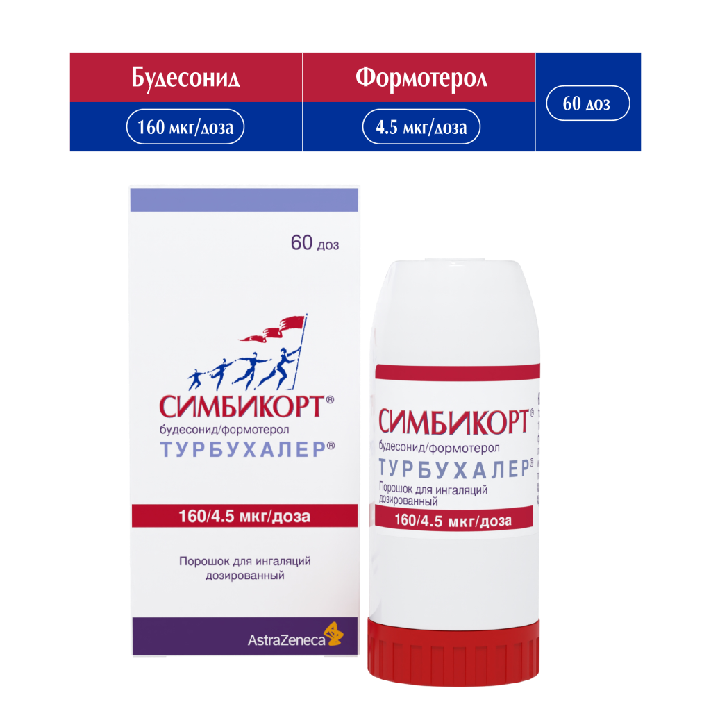 Симбикорт Турбухалер содержит формотерол и будесонид, которые имеют разные механизмы действия и проявляют аддитивный эффект в отношении снижения частоты обострений бронхиальной астмы.