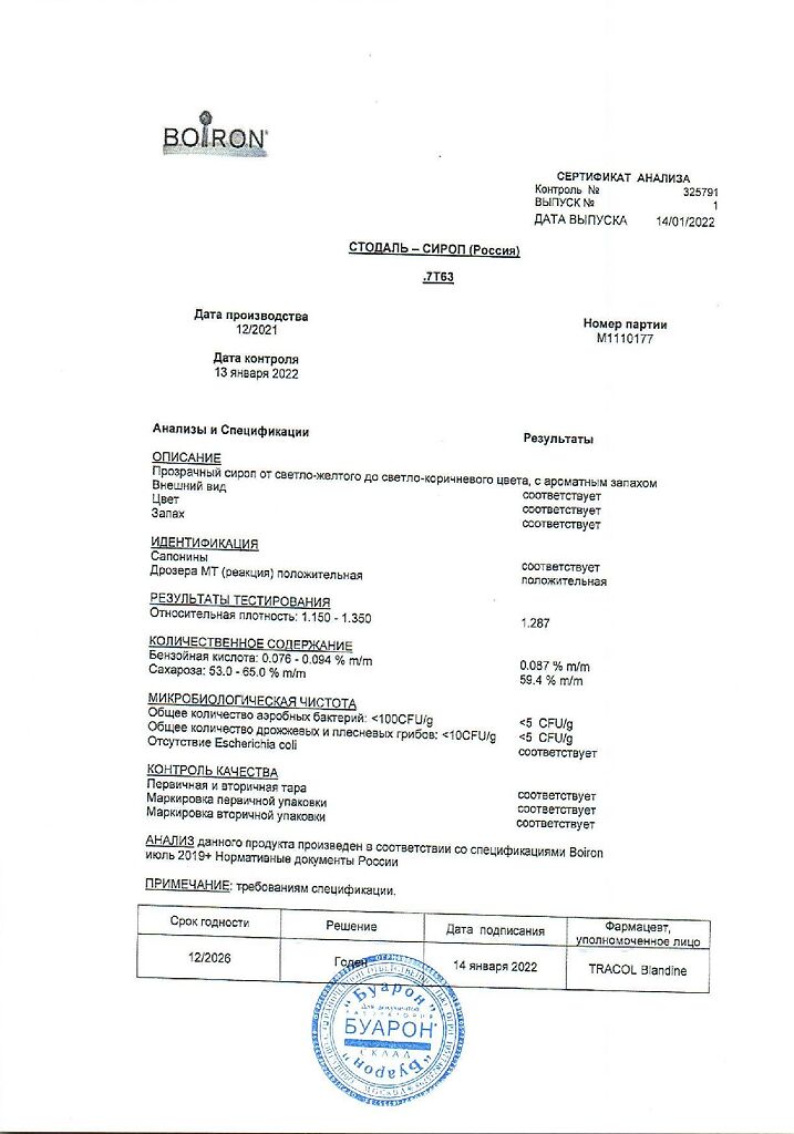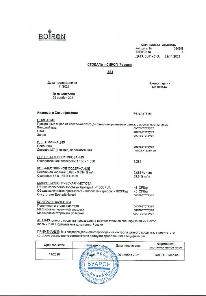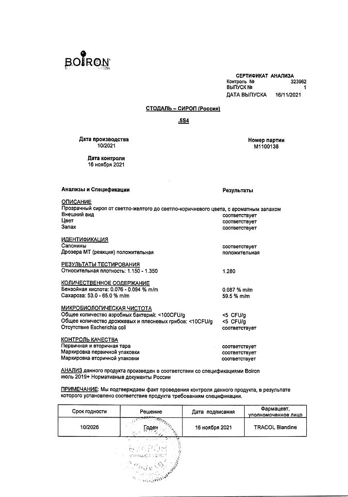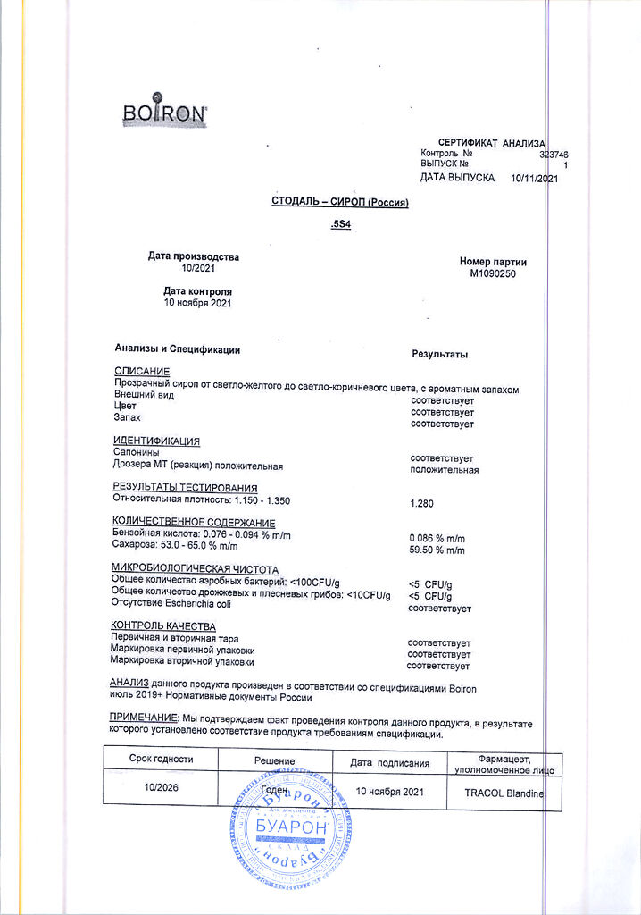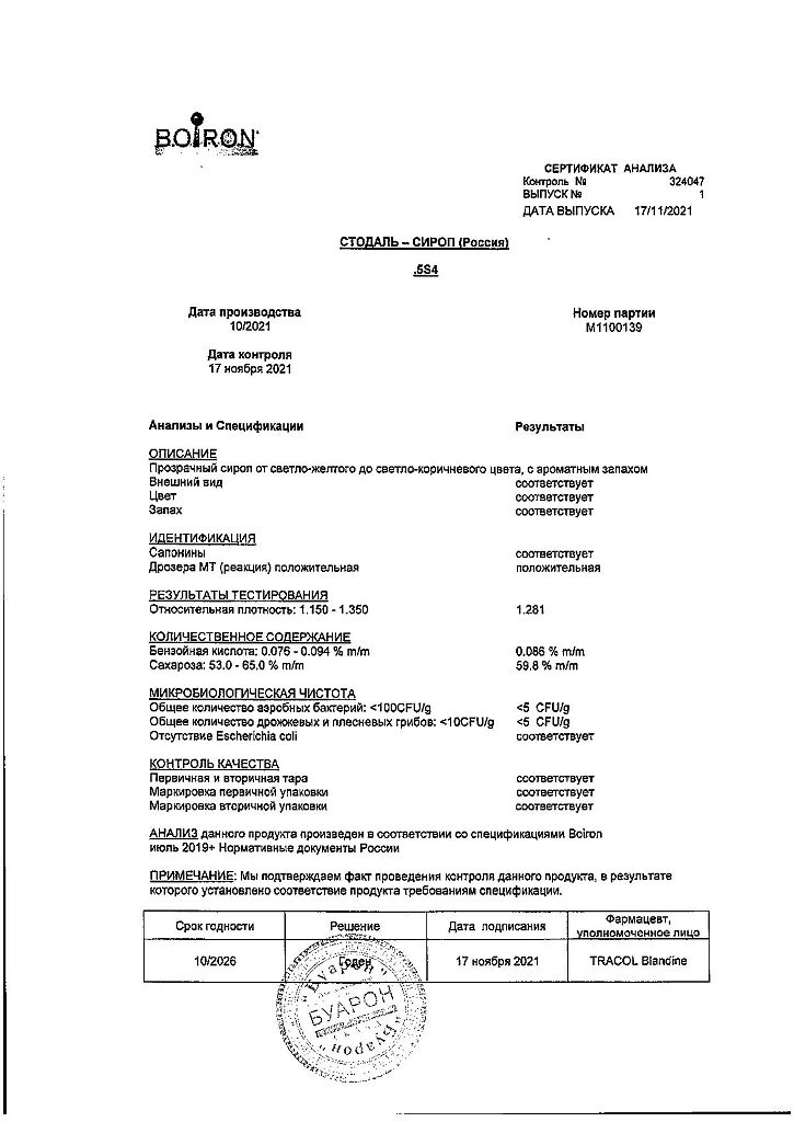 Сироп Стодаль принимают внутрь.