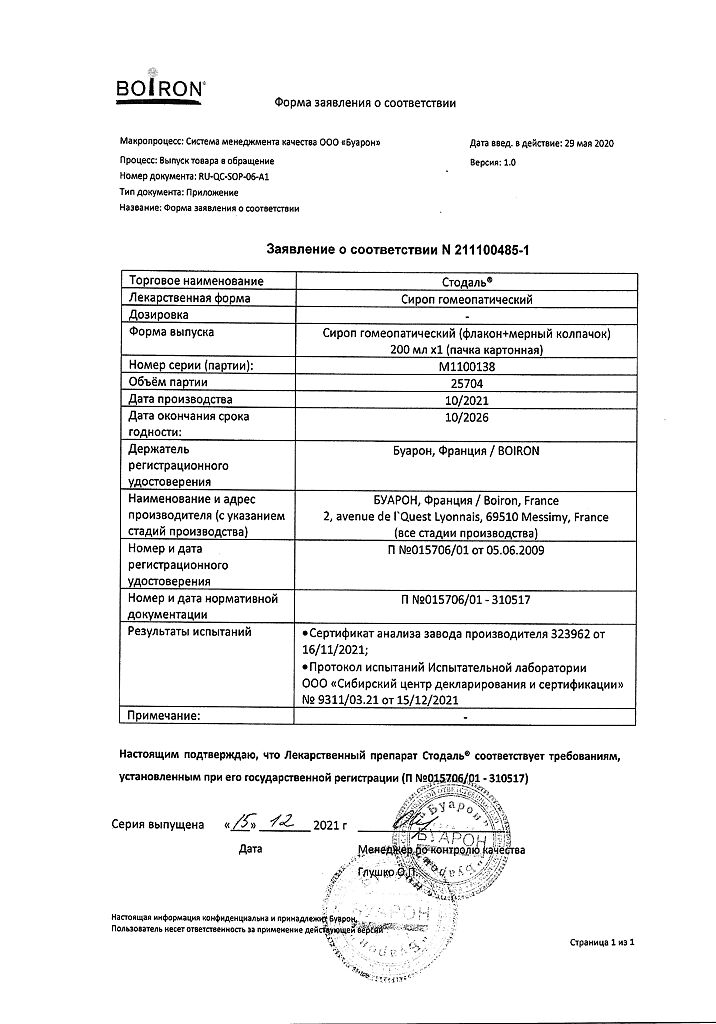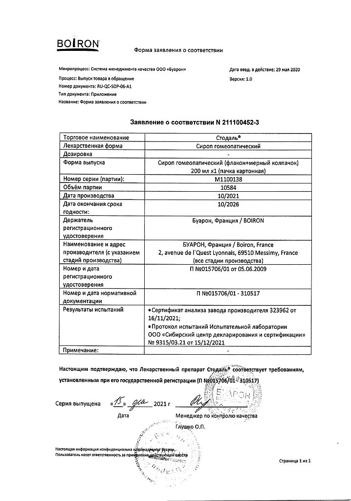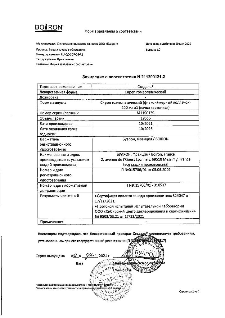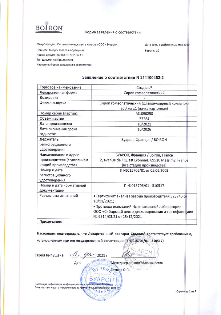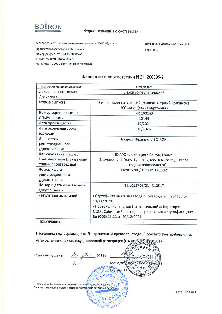 Сироп Стодаль принимают внутрь.