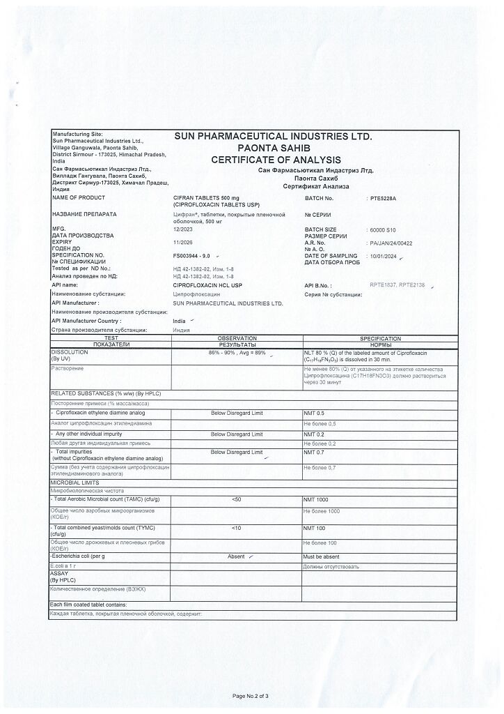 Производитель: Сан Фармасьютикал Индастриз Лтд, Индия