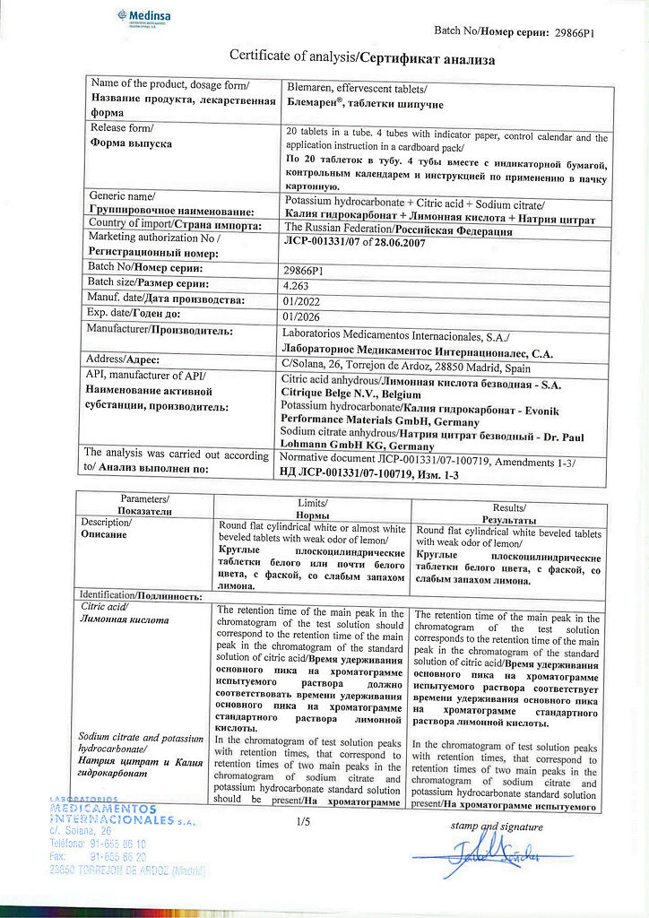 Производитель: Лабораториос Медикаментос Интернационалес, С.А, Испания