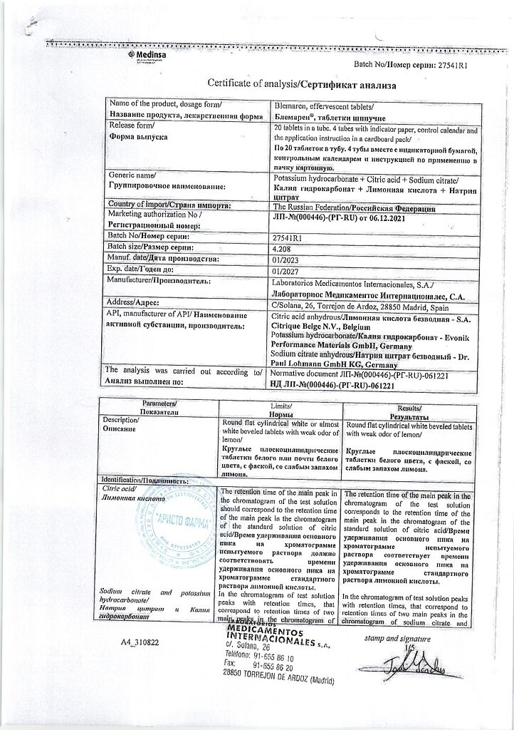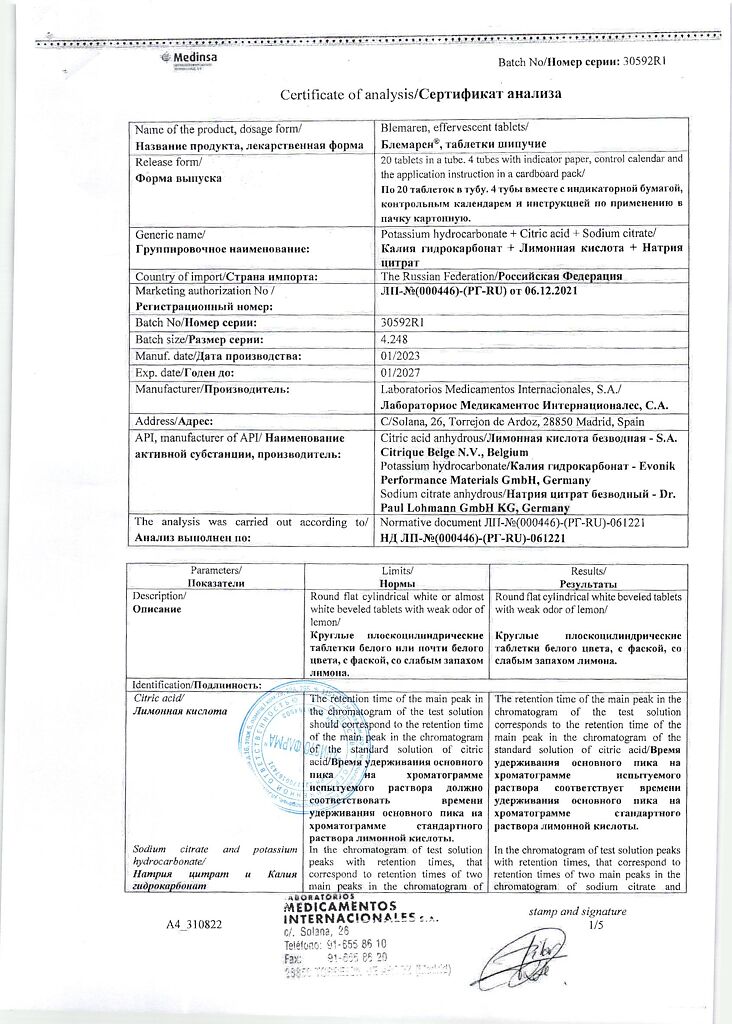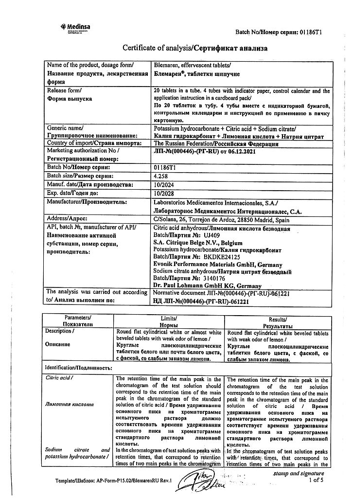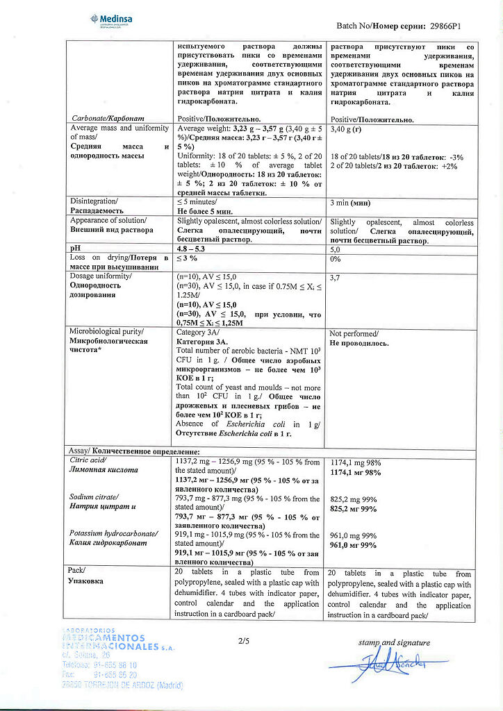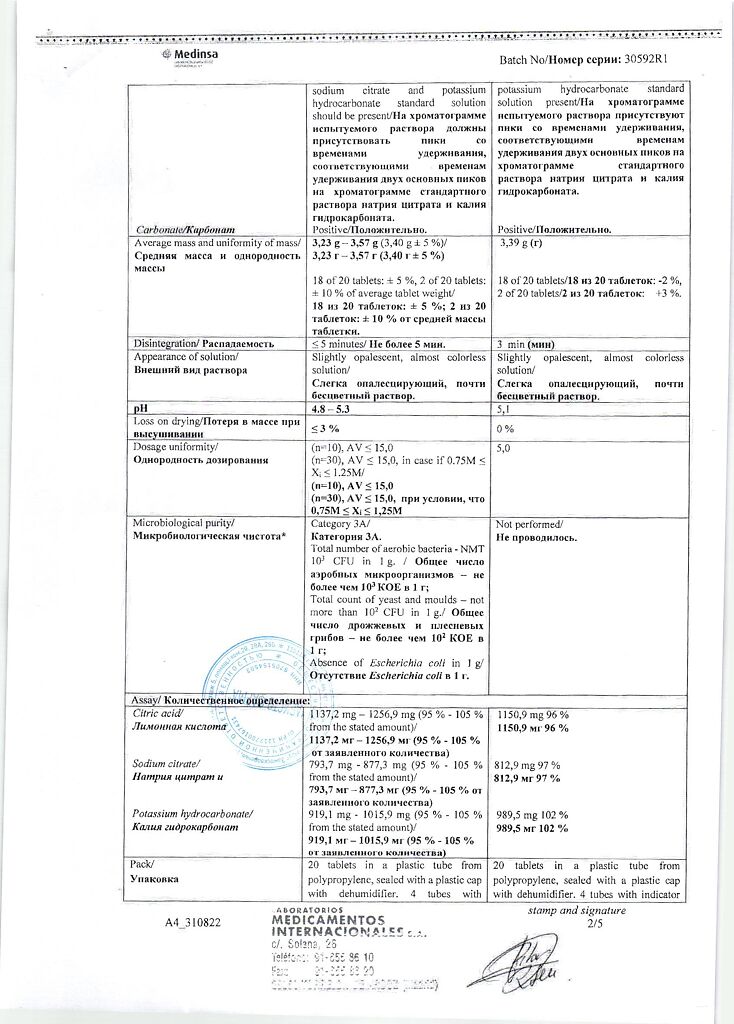 Контроль эффективности (определение рН мочи) проводят 3 раза/сут, перед приемом каждой разовой дозы с помощью индикаторной бумаги. Полученный цвет на бумаге сравнивают в течение 2 мин со шкалой и заносят полученную величину в контрольный календарь.