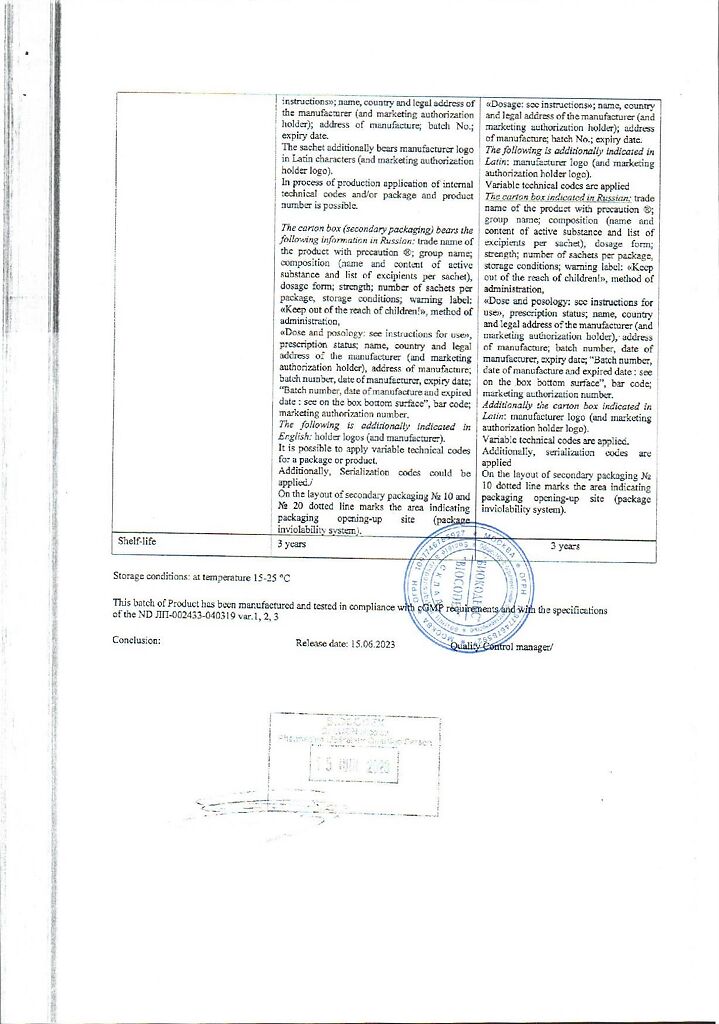 Содержимое пакетика можно размешать с водой или другим напитком, а также добавить в пищу или в бутылочку с детским питанием, непосредственно перед приемом.