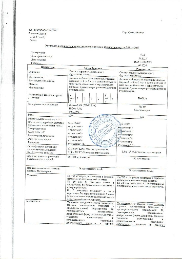 Действующее вещество: Saccharomyces boulardii CNCM I-745 лиофилизат 250,00 мг.