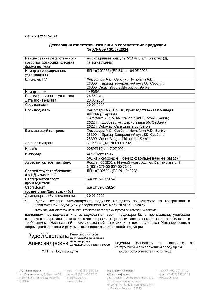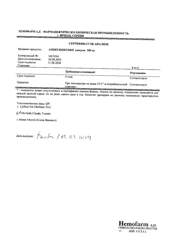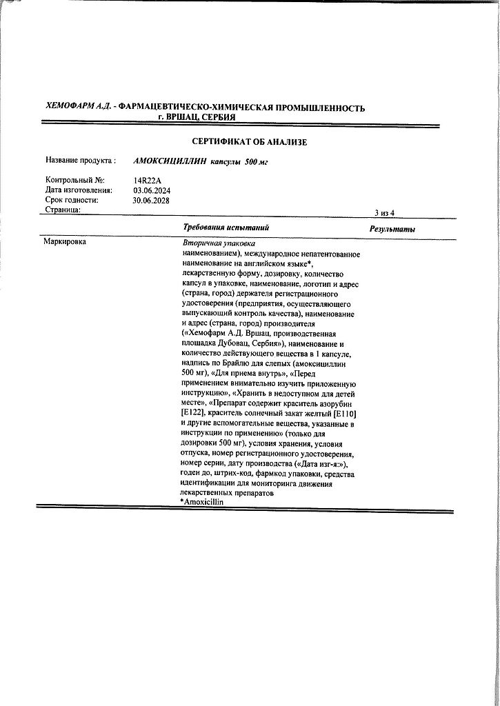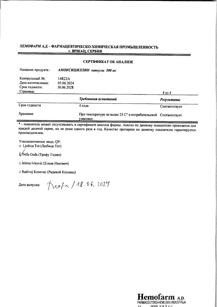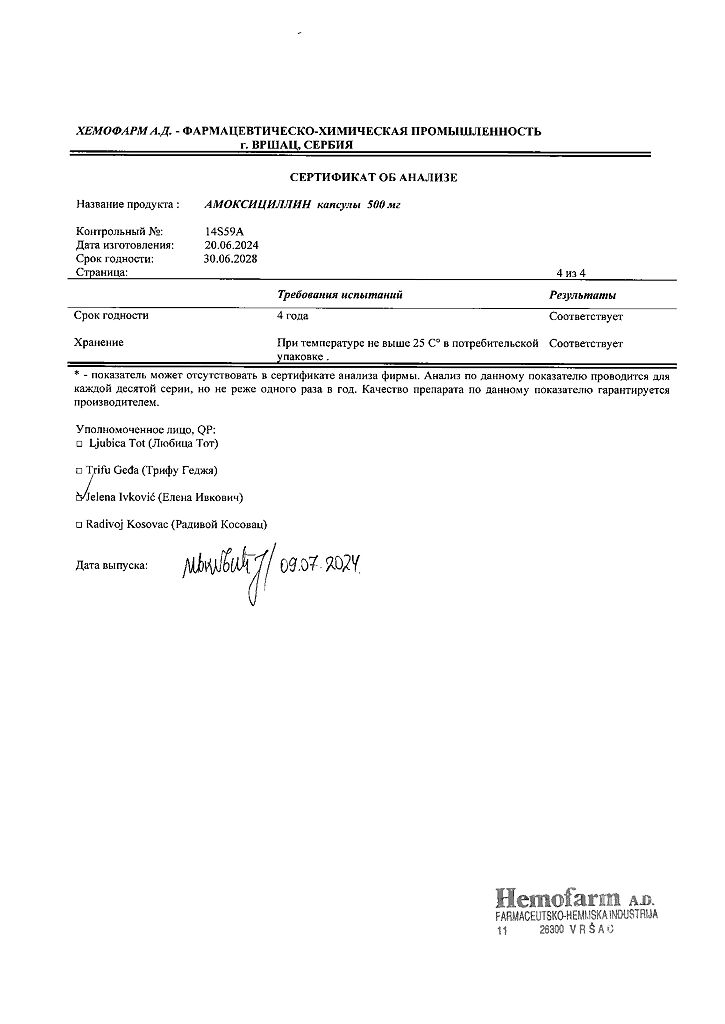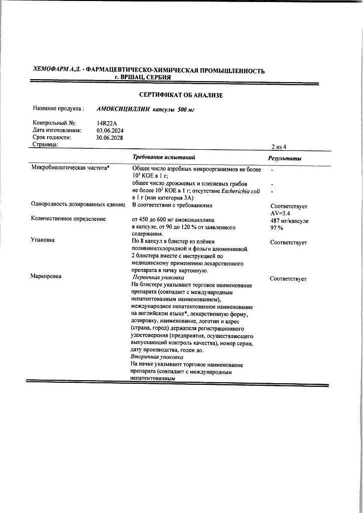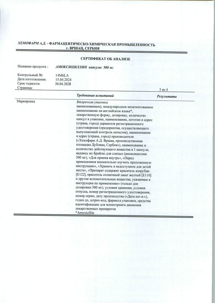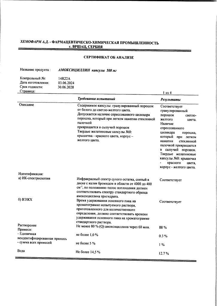 амоксициллин 500.00 мг (в форме амоксициллина тригидрата 573,9 мг);