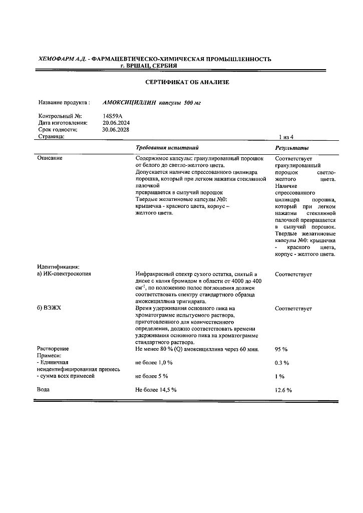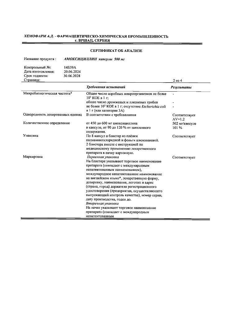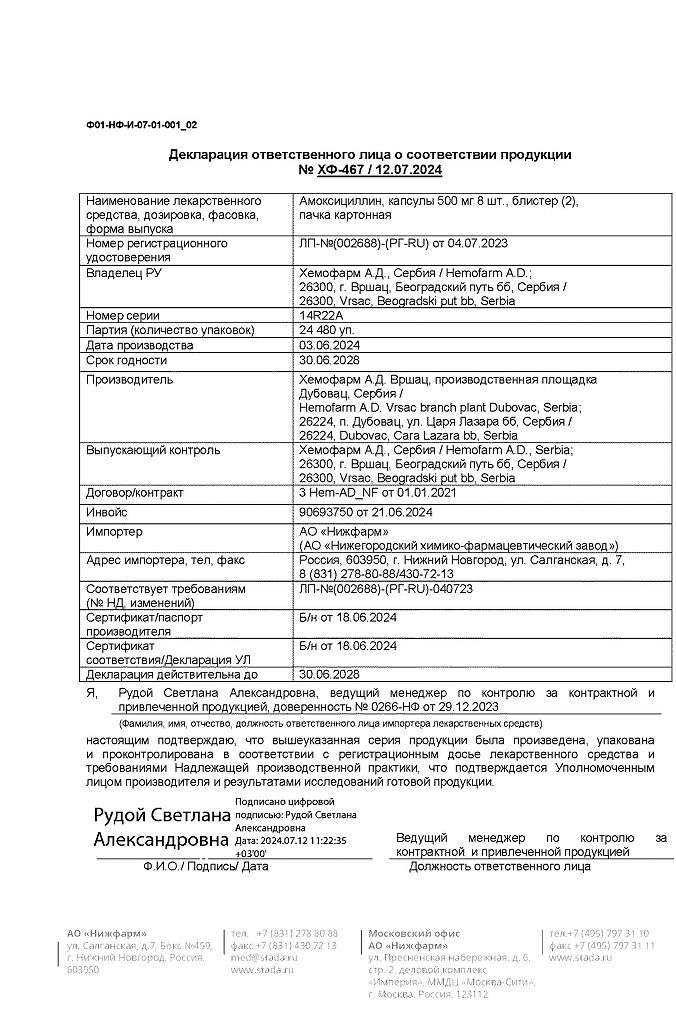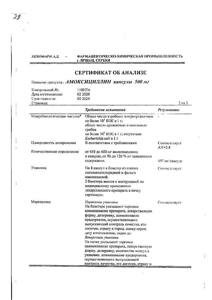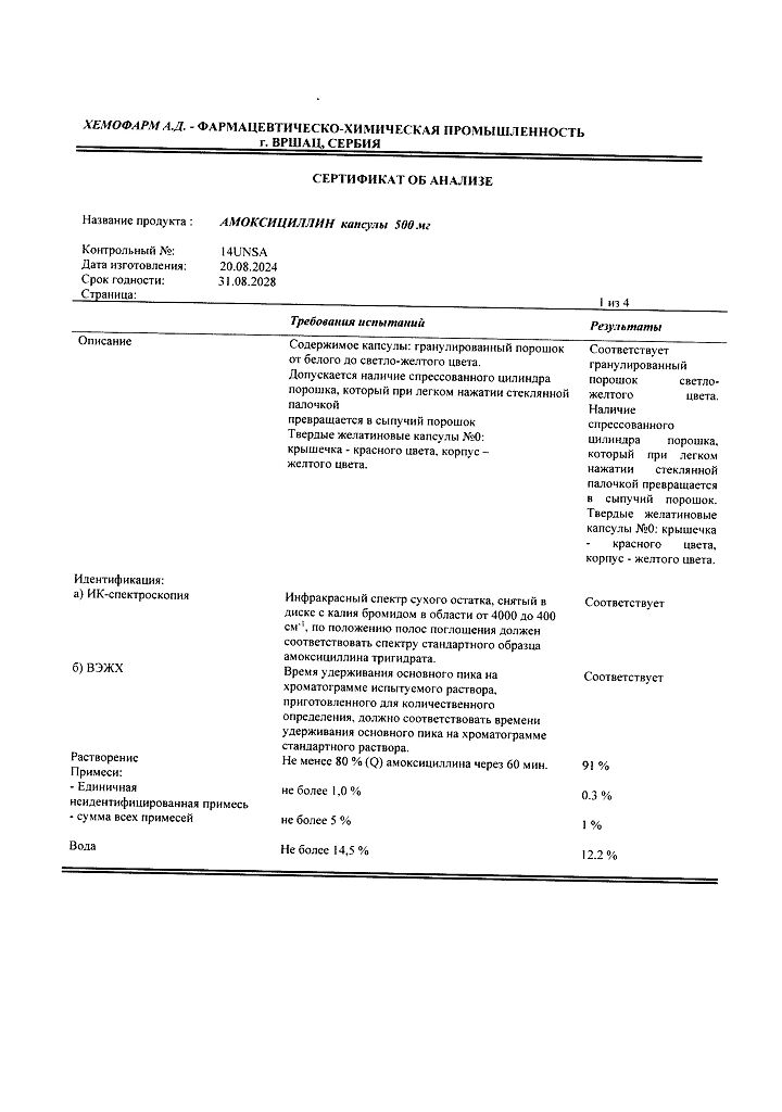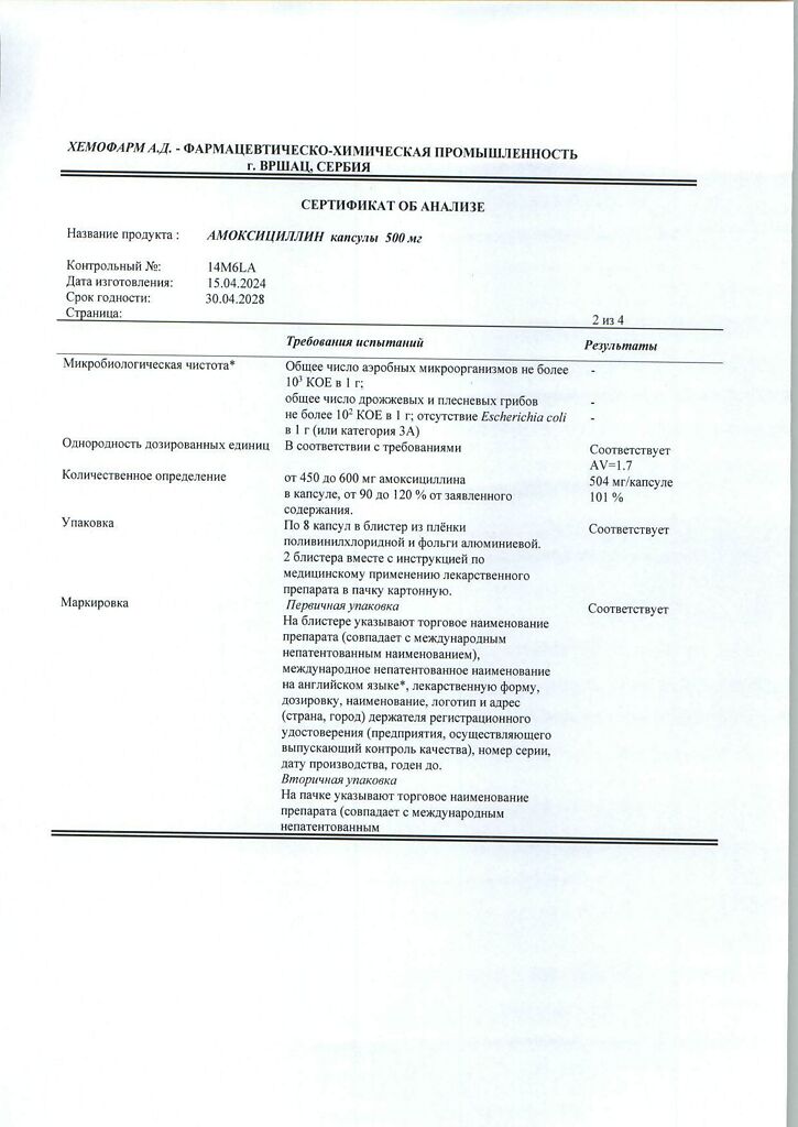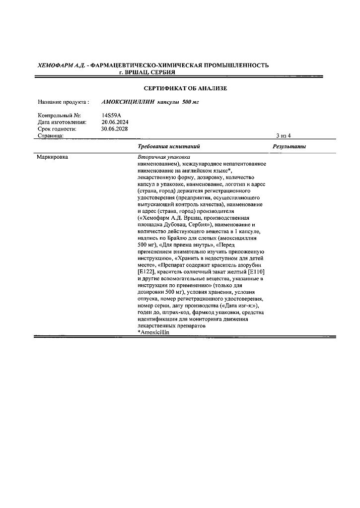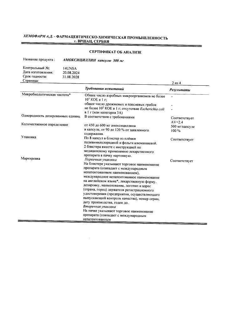 амоксициллин 500.00 мг (в форме амоксициллина тригидрата 573,9 мг);