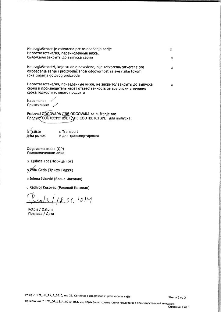 вспомогательные вещества - магния стеарат 9,20 мг, целлюлоза микрокристаллическая PH 102 - 26,90 мг; капсула № 0: желатин до 96 мг; крышечка капсулы: титана диоксид [Е 171] - 0,49920 мг, краситель солнечный закат желтый [Е ПО] - 0,13774 мг, краситель азорубин [Е 122] - 0,13336 мг; корпус капсулы: титана диоксид [Е 171] -0,57600 мг, краситель железа оксид желтый [Е 172]-0,26899 мг.