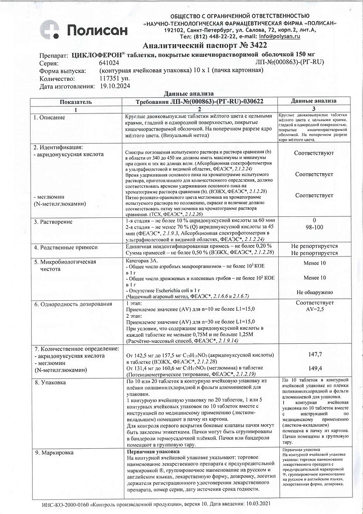 Фармдействие:Иммуномодулятор. Циклоферон® является низкомолекулярным индуктором интерферона, что определяет широкий спектр его биологической активности (противовирусной, иммуномодулирующей, противовоспалительной).