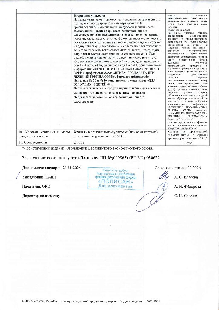 При лечении гриппа и острых респираторных заболеваний препарат принимают на 1, 2, 4, 6, 8-е сутки (курс лечения – 20 таблеток). Лечение необходимо начинать при первых симптомах заболевания.