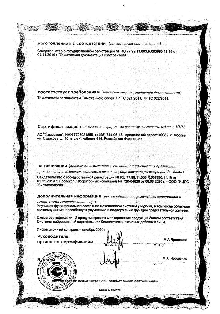 Индивидуальная непереносимость компонентов комплекса ПРОСТАТА ФОРТЕ Менс формула, хроническая почечная недостаточность.