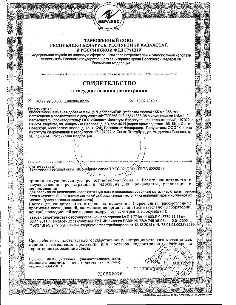 Производитель: Клиника Института биорегуляции и геронтологии, Россия