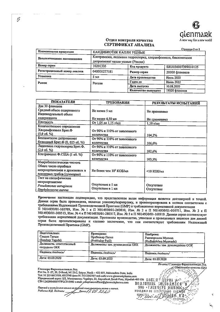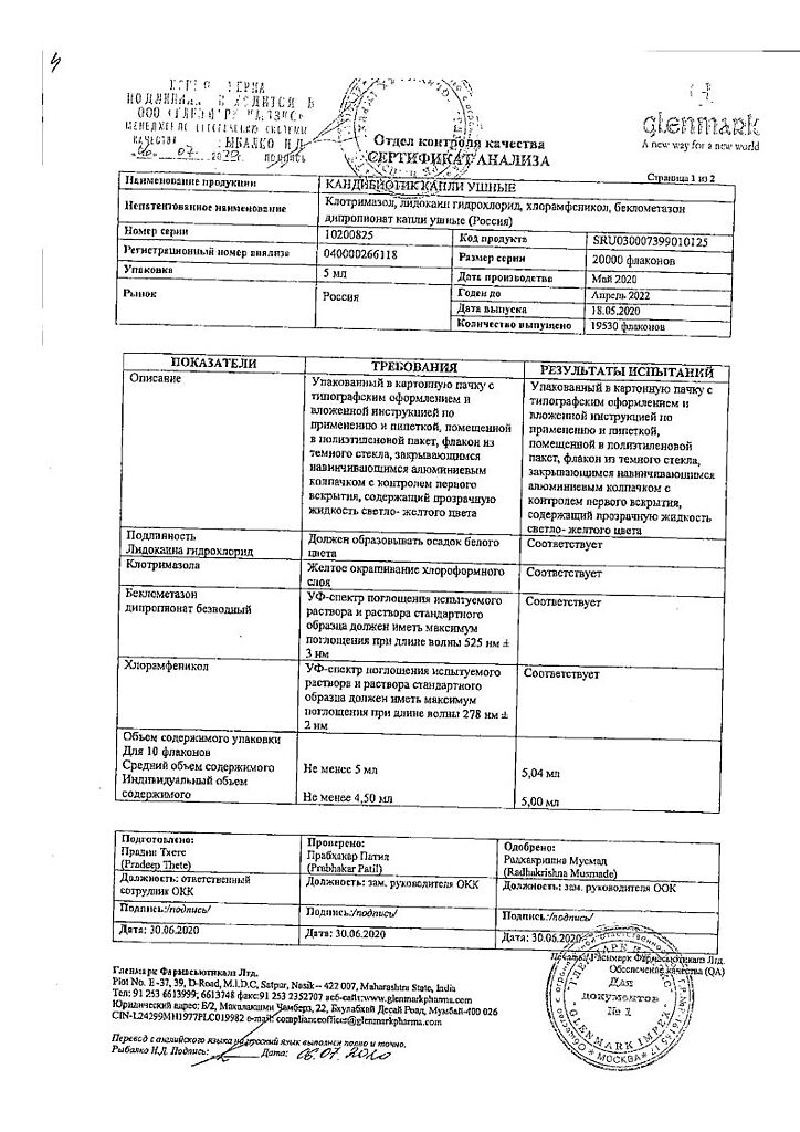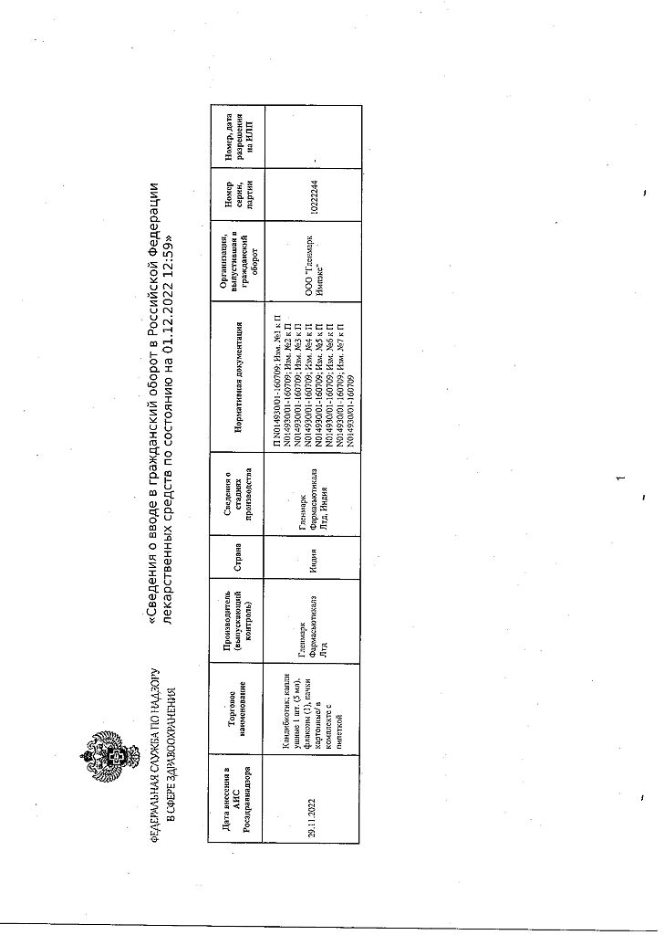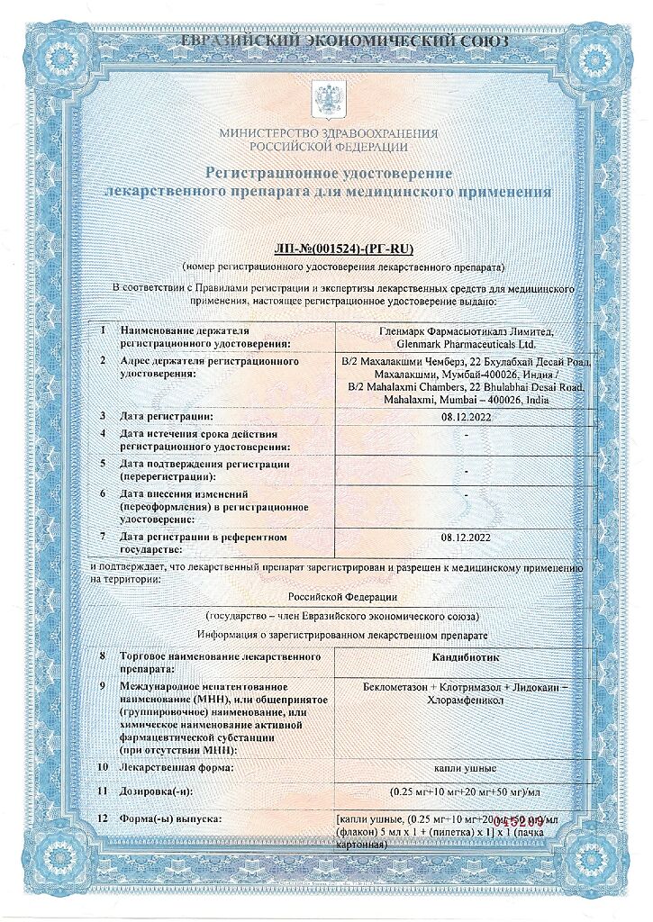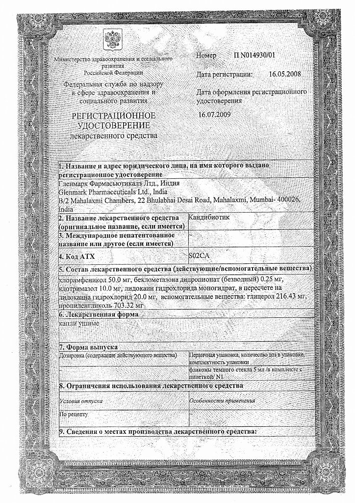 Документы Кандибиотик капли ушные 5 мл 1 шт