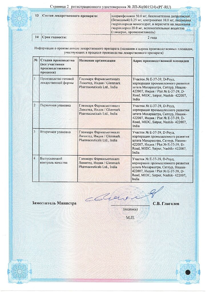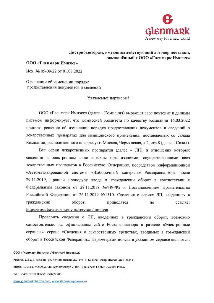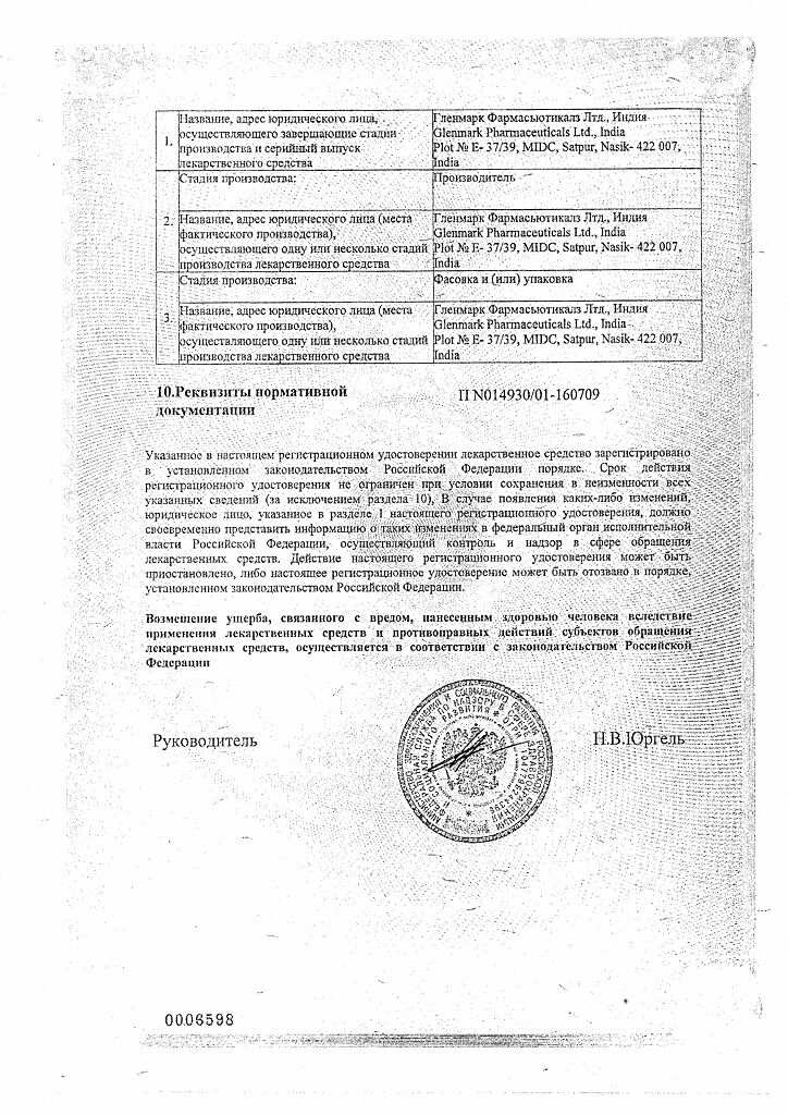 Производитель: Гленмарк Фармасьютикалз Лтд, Индия