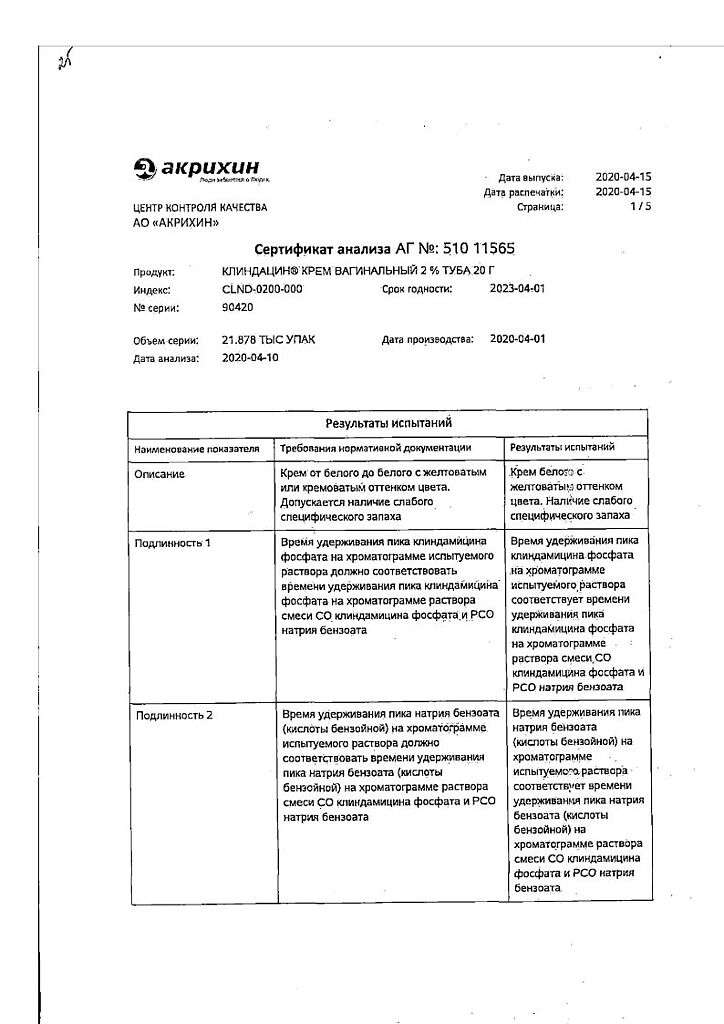 Активен в отношении микроорганизмов, вызывающих бактериальные вагинозы: Gardnerella vaginalis, Mobiluncus spp., Bacteroides spp., Mycoplasma hominis, Peptostreptococcus spp. К клиндамицину не чувствительны Trichomonas vaginalis и Candida albicans.