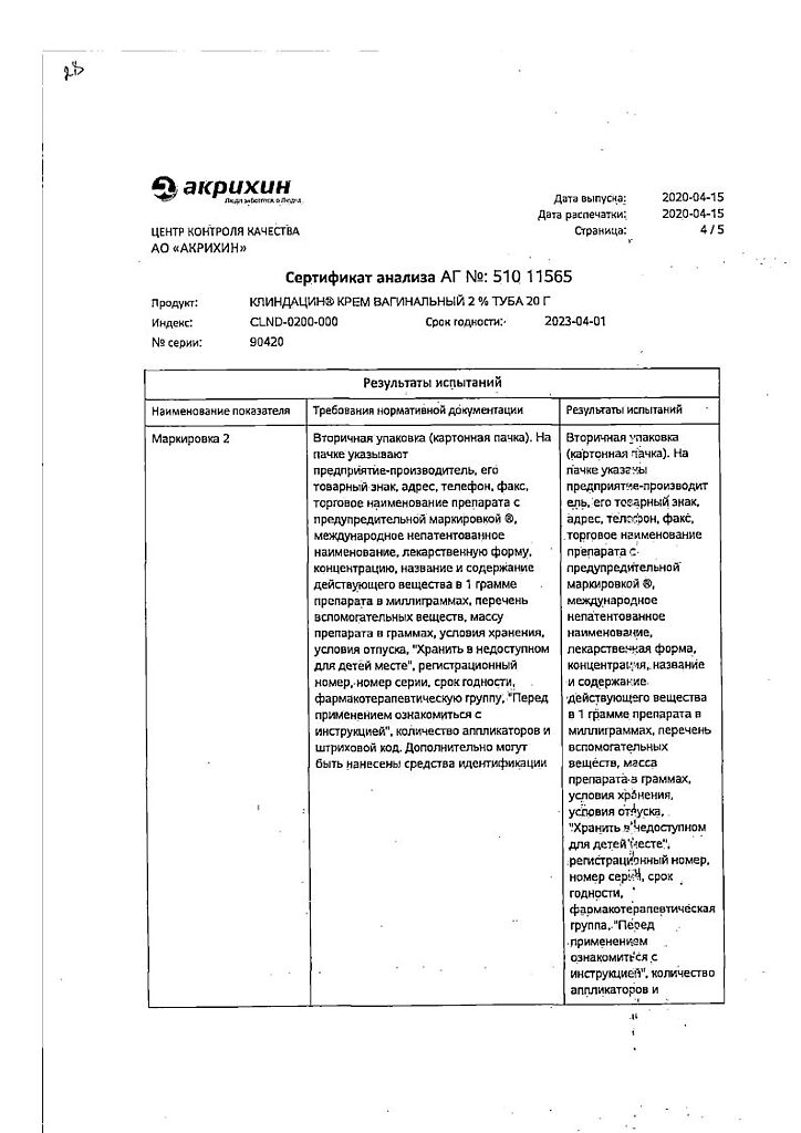 Использование в педиатрии Эффективность и безопасность применения Клиндацина у детей не установлены.