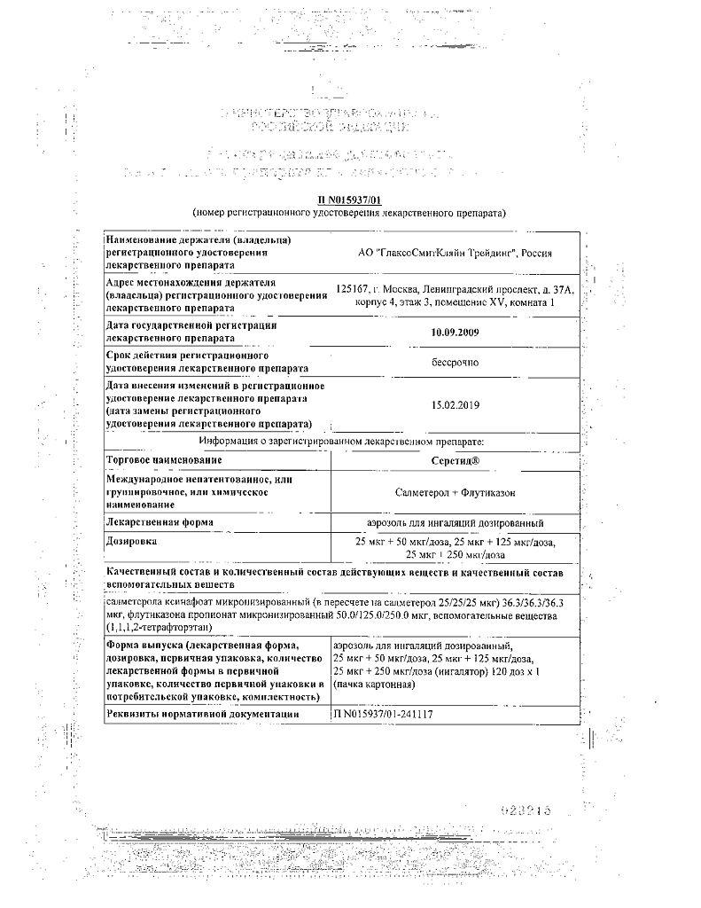 салметерола ксинафоат 36,3 мкг (в пересчете на салметерол 25 мкг),