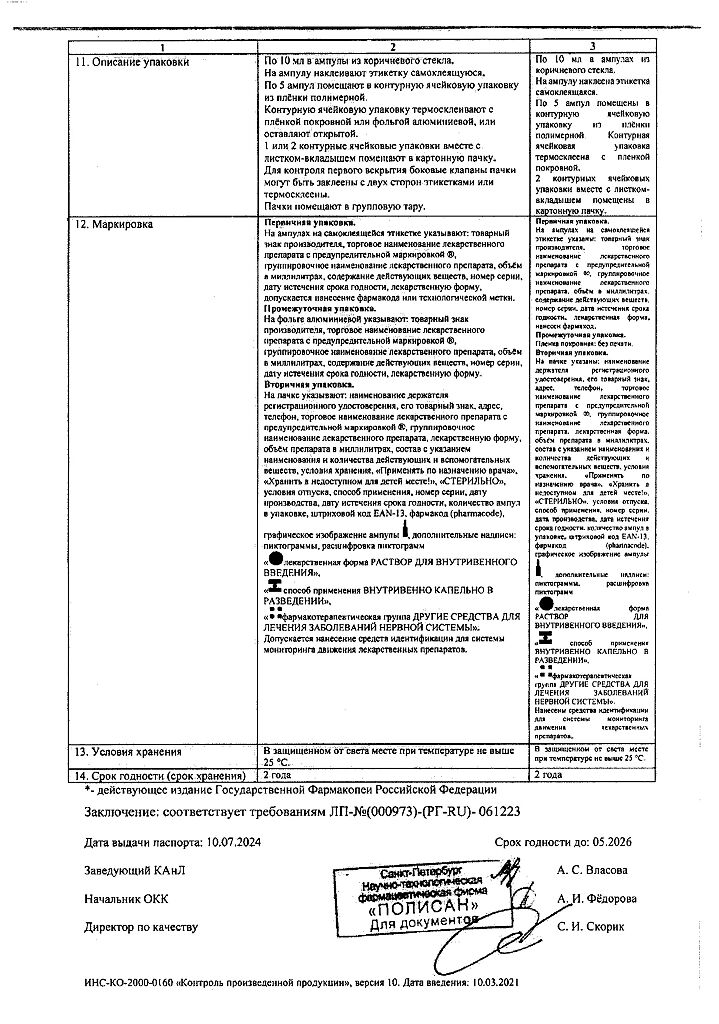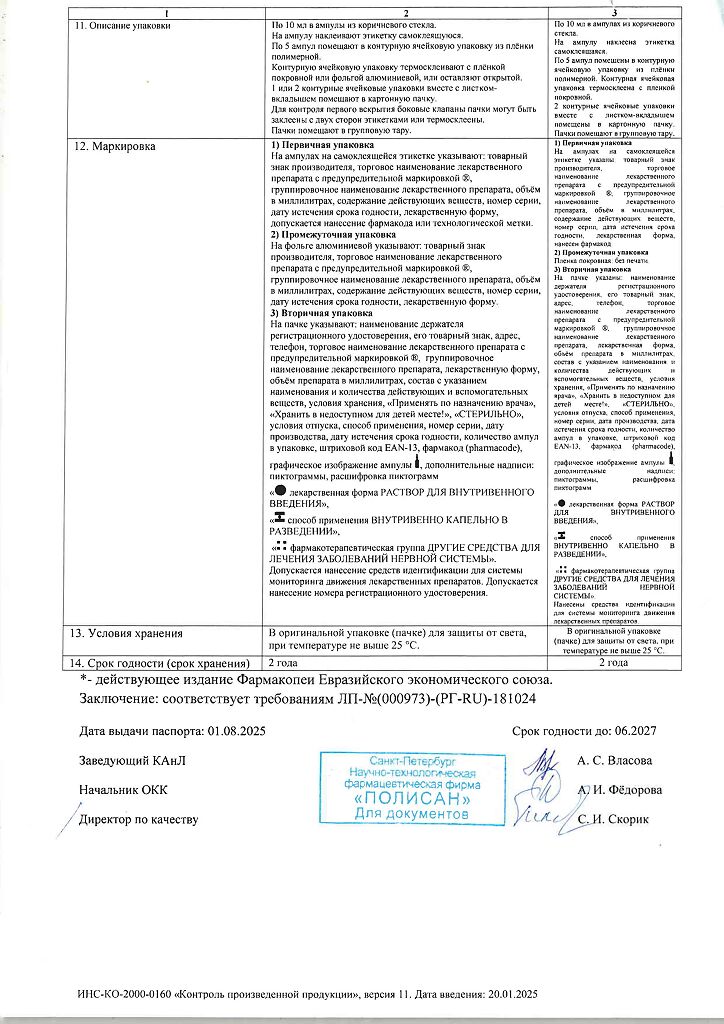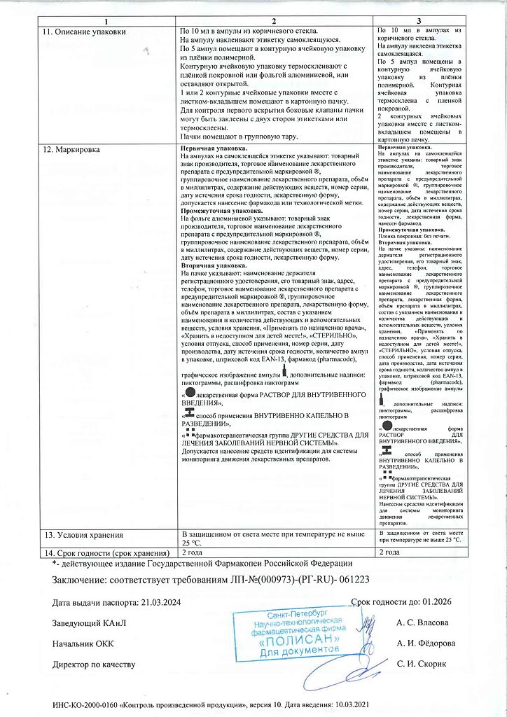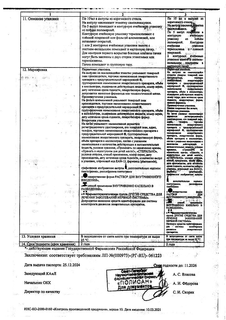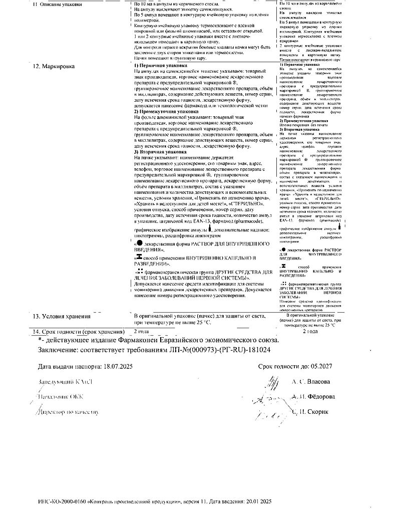 3. Токсической и гипоксической энцефалопатии при острых и хронических отравлениях, эндотоксикозах, посленаркозном угнетении сознания, а также для профилактики и лечения гипоксической энцефалопатии при кардиохирургических операциях с использованием искусственного кровообращения.