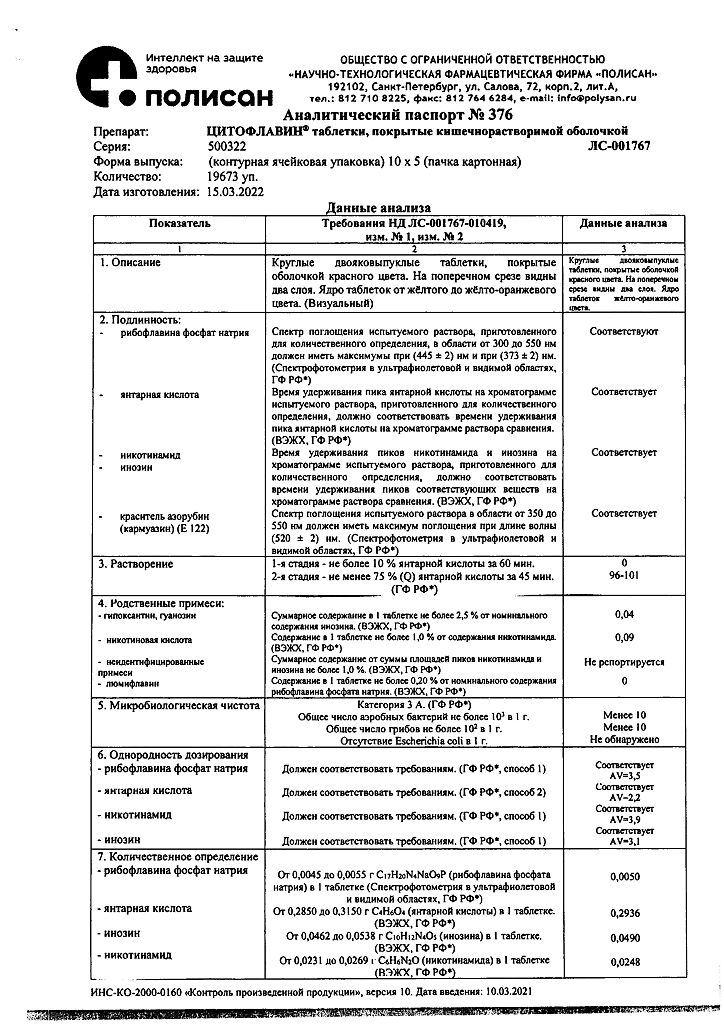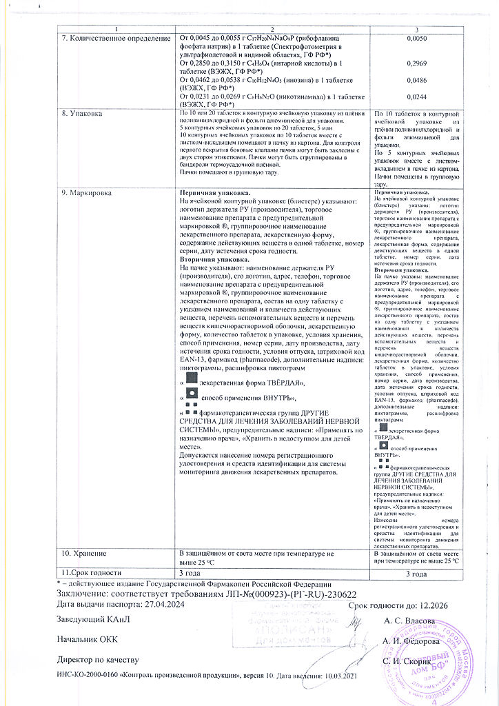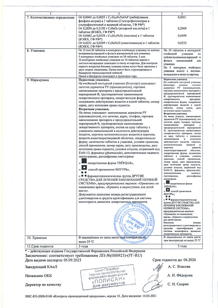Действующее вещество: Инозин, Никотинамид, Рибофлавин, Янтарная кислота