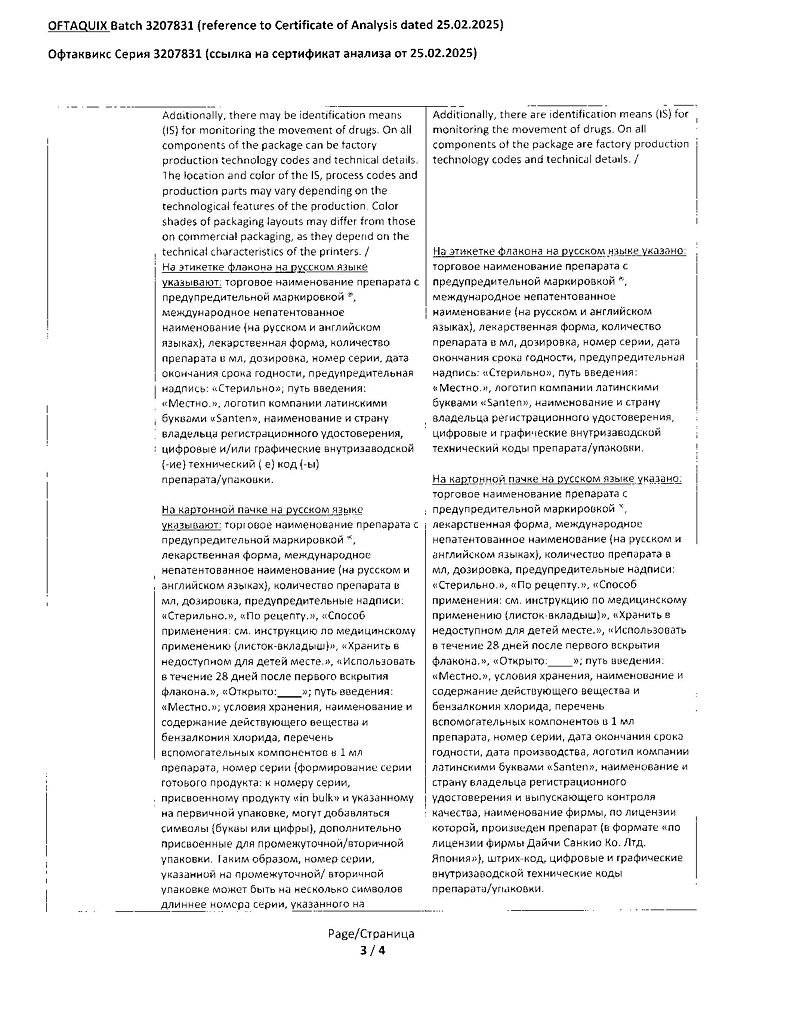Поскольку максимальная концентрация левофлоксацина в плазме после местного применения в глазу минимум в 1000 раз ниже, чем после приема стандартных доз внутрь, взаимодействие с другими лекарственными средствами, характерное для системного применения, скорее всего, клинически незначимо.