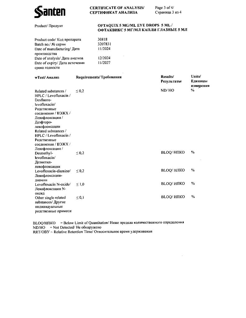 Левофлоксацина гемигидрата 5,12 мг, что эквивалентно левофлоксацину 5,0 мг.