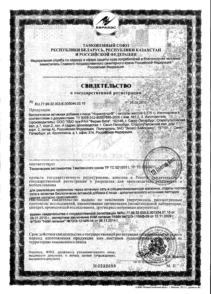 Документы Нормофтал капсулы массой 0,275 г 60 шт