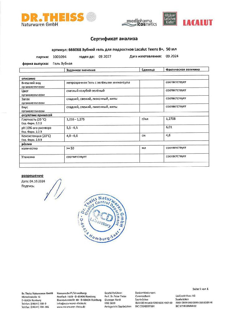 Производитель: Др.Тайсс Натурварен ГмбХ, Германия