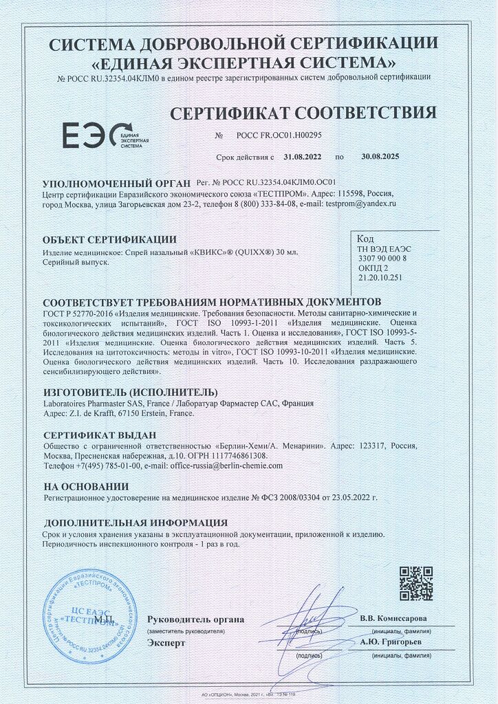 Благодаря своим свойствам «Квикс®» восстанавливает функции носа, и тем самым снижает риск осложнений (ринит, синусит) и облегчает дыхание.