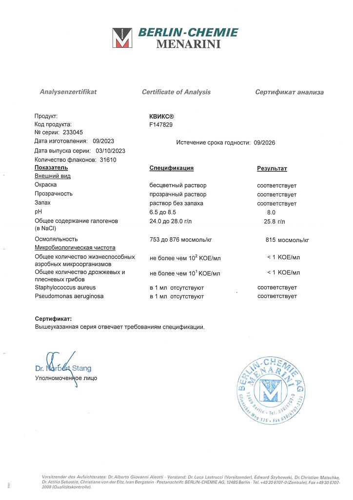 Всегда используйте «Квикс®» в соответствии с данной инструкцией по применению. Если у вас возникли сомнения, проконсультируйтесь с врачом или работником аптеки.