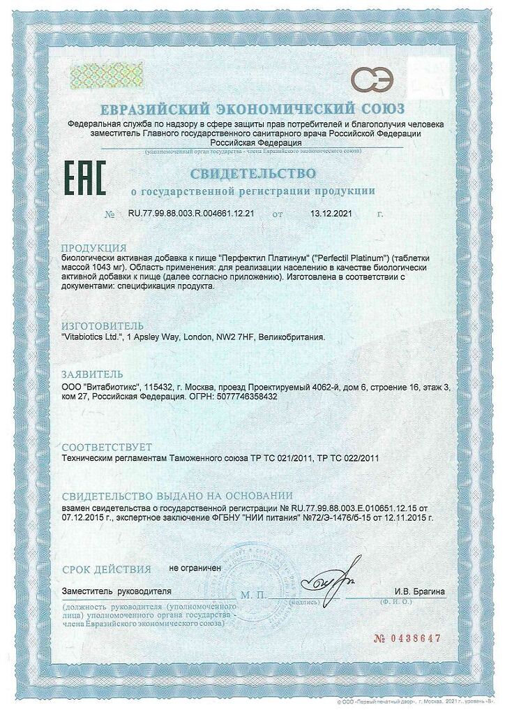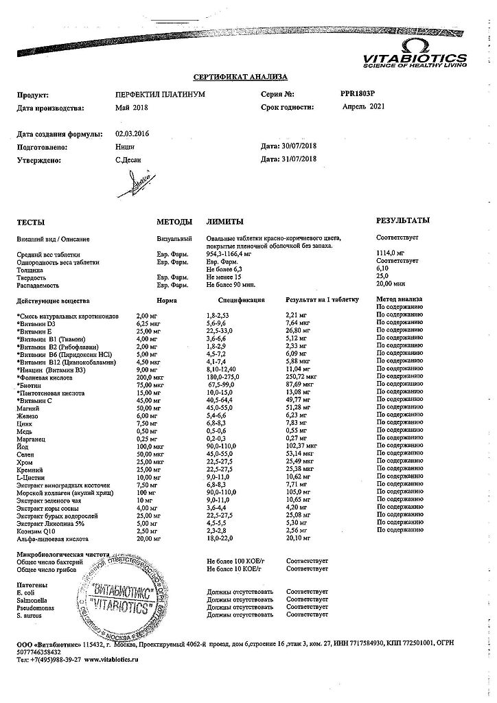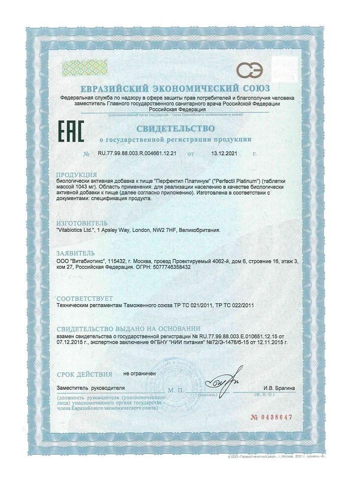 Документы Перфектил Платинум / Perfectil Platinum таблетки массой 1043 мг 60 шт