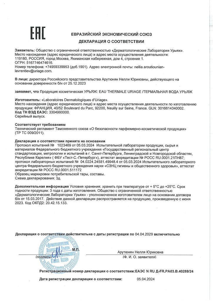 Документы Uriage Eau Thermale Термальная вода спрей 300 мл 1 шт