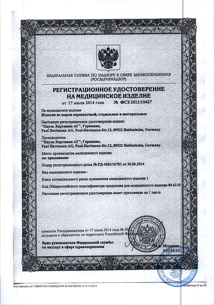 Салфетки из высококачественной хлопчатобумажной марли, 17 нитей на квадратный сантиметр; 8 слоев с подвернутой кромкой; развернув несколько раз, можно использовать в большом формате, при этом края салфетки не осыпаются.