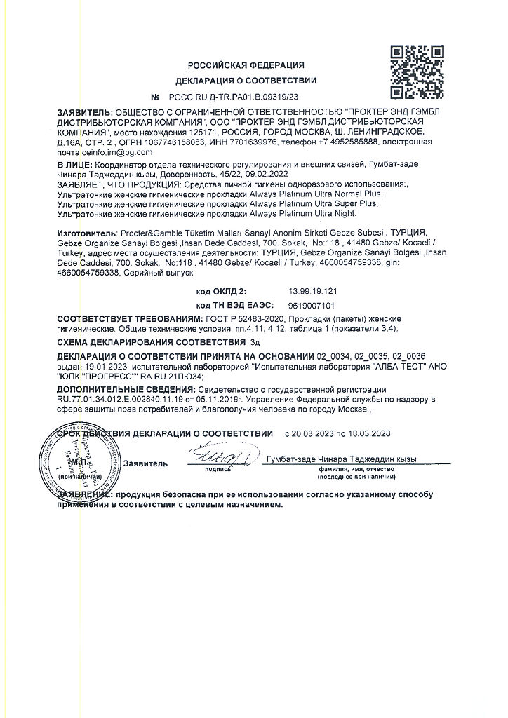 Гигиенические прокладки Always Platinum обеспечивают лучшее сочетание комфорта и защиты среди прокладок Always.