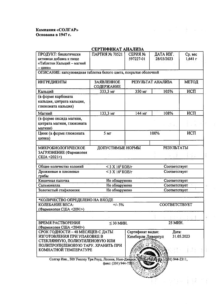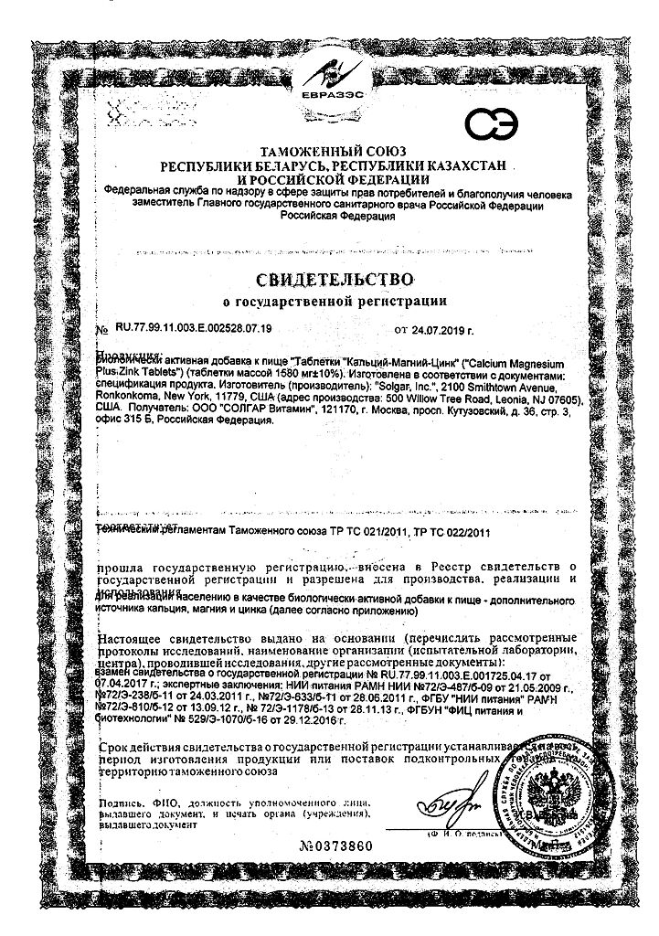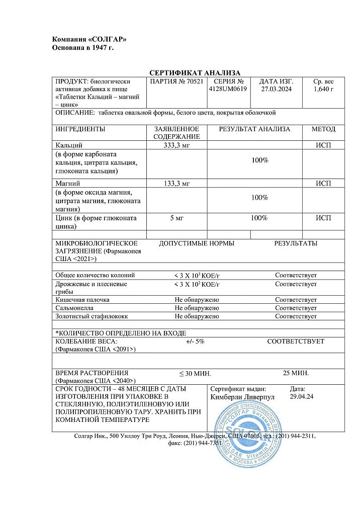 Солгар Кальций Магний Цинк не рекомендуется беременным и в период лактации.