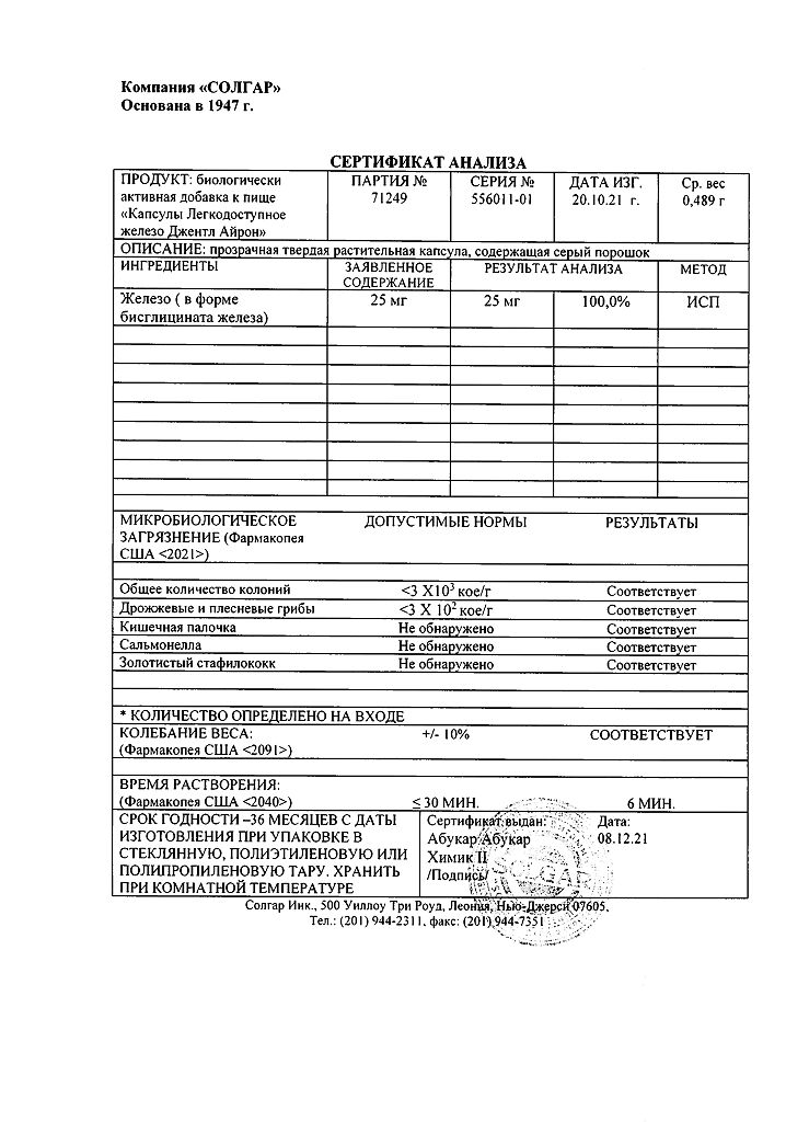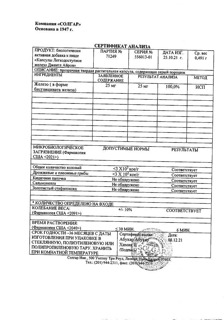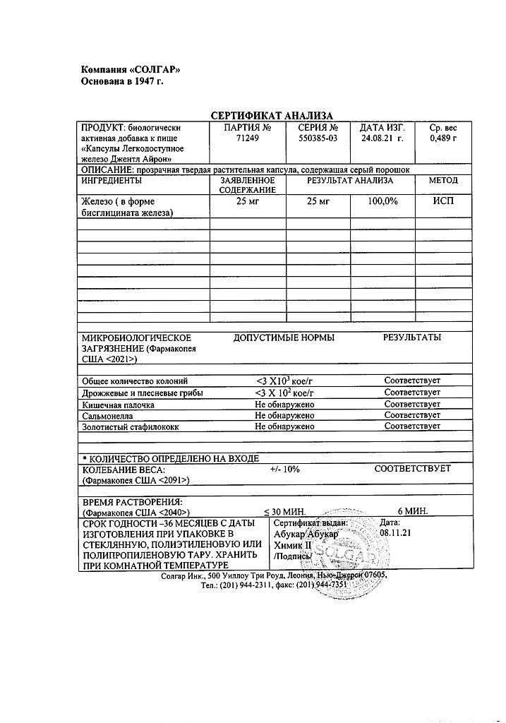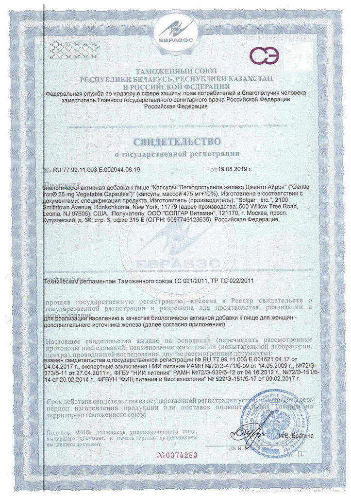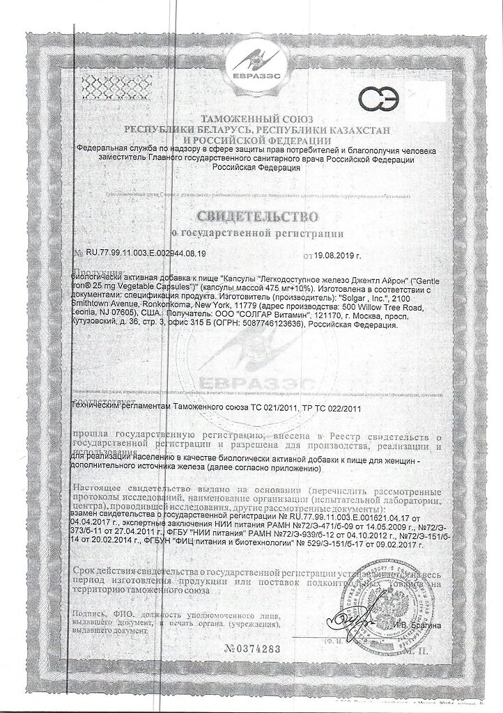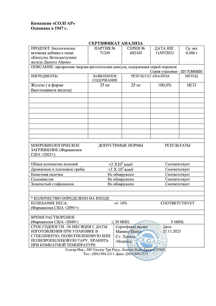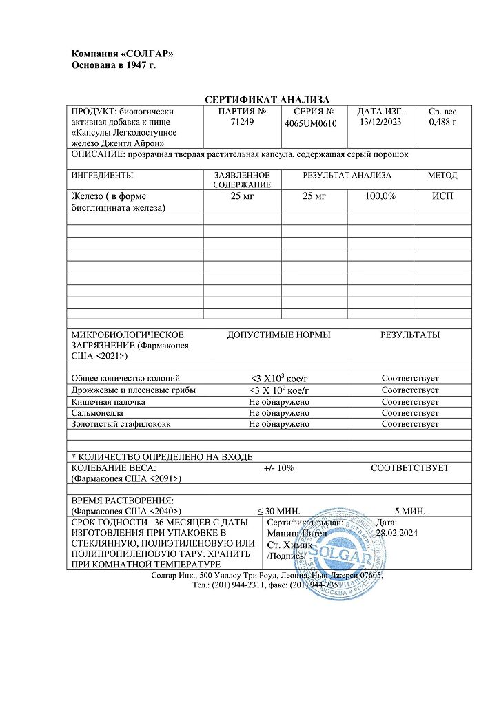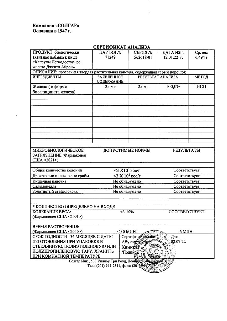 Все варианты Солгар Джентал Айрон Легкодоступное железо