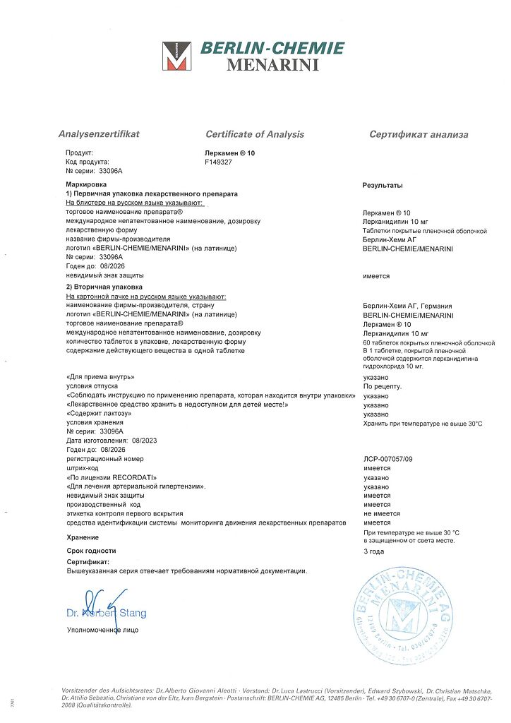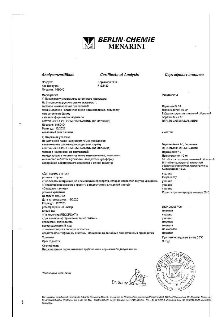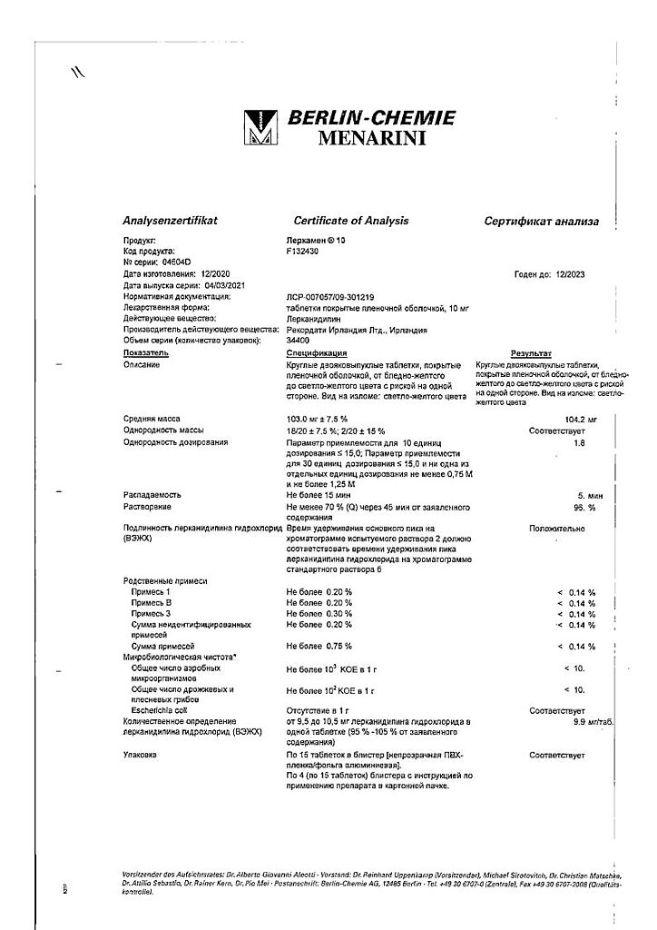 Действующее вещество: Лерканидипин