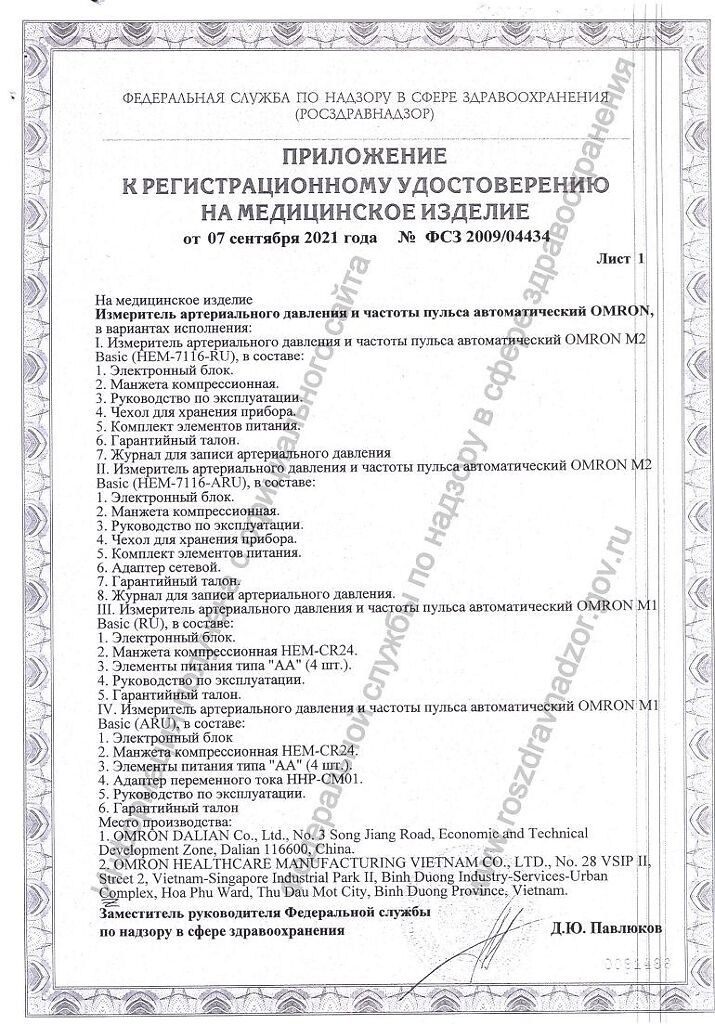 Производитель: OMRON Healthcare Co.Ltd., Вьетнам