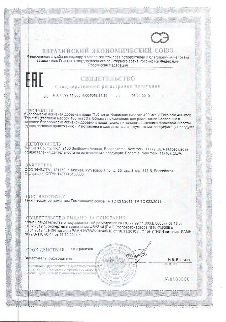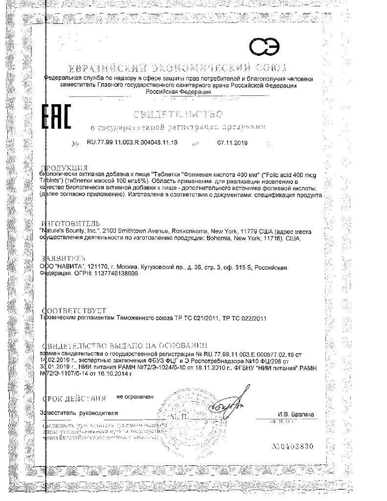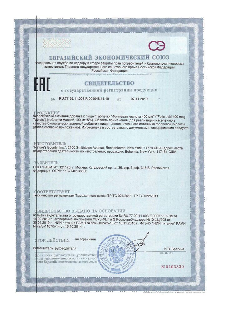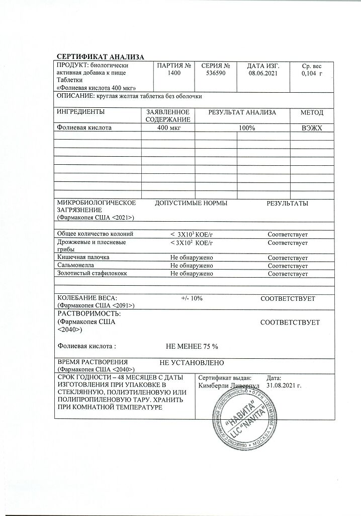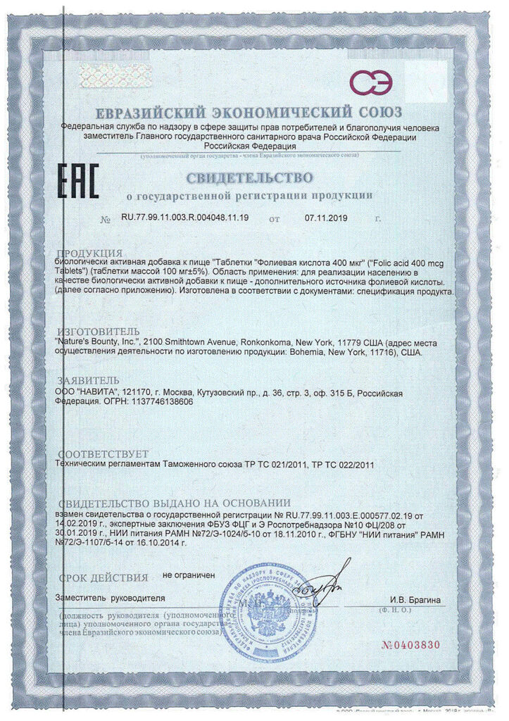 фолиевая кислота 400 мкг