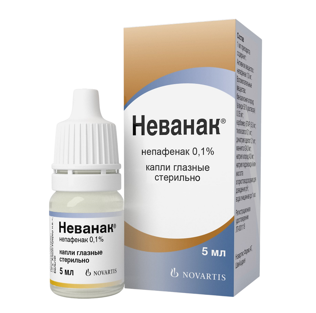 При местном применении непафенак уменьшает отек тканей глаза и боль, не оказывает значимого эффекта на внутриглазное давление.
